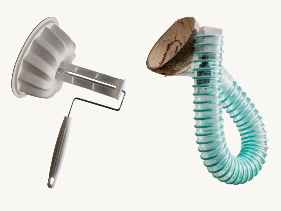 1歳が持つ創造力を信じ、大人の意図を入れないように意図して作った奇妙な形の試作品は数知れず。