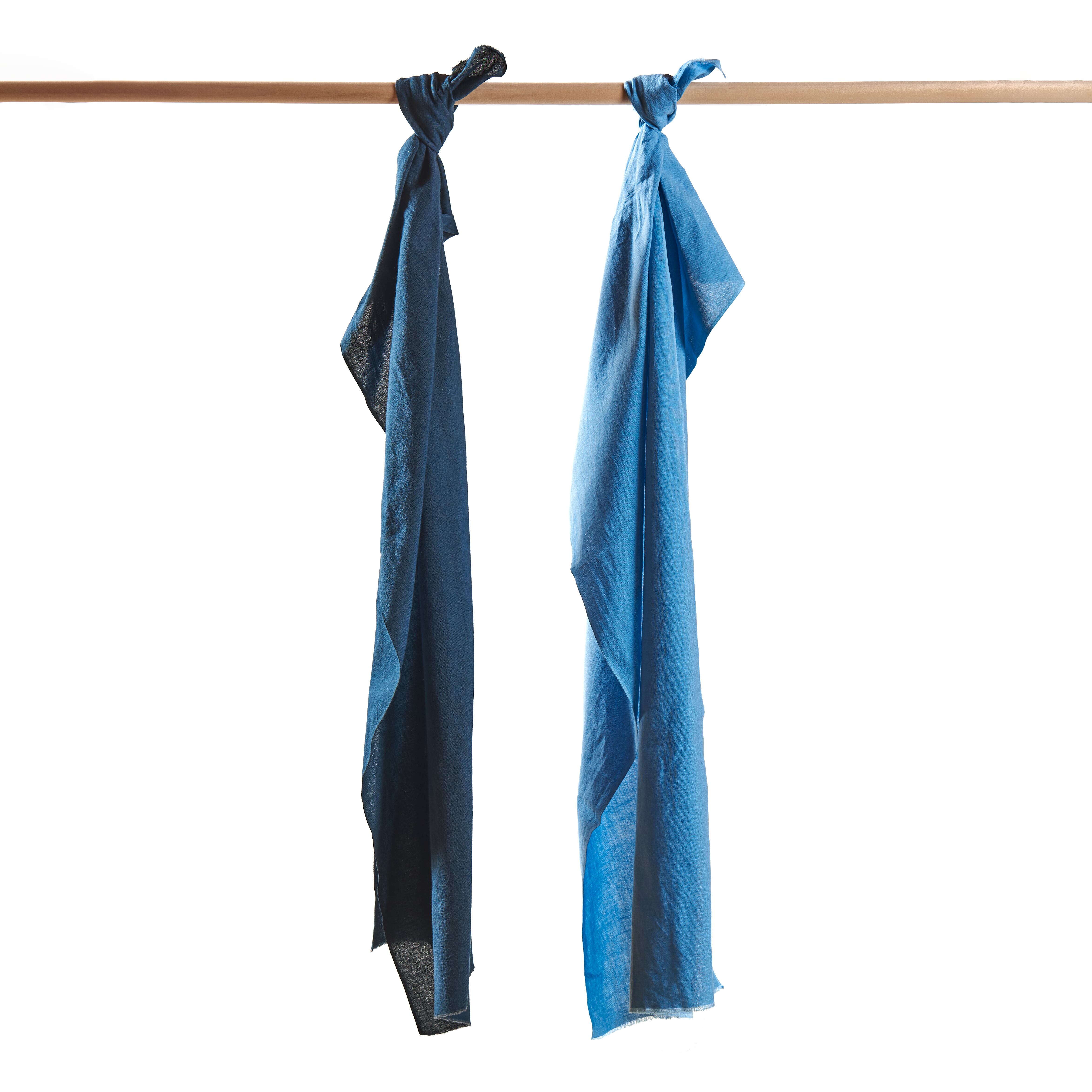 畑の土づくりから染色まですべて天然である「京藍染」。自然の色から生まれた染物は、天候によって染まる色が変化する一点もの。防臭・抗菌作用があり色移りしないので、ご自宅でも京藍染のある生活をお楽しみいただけます。