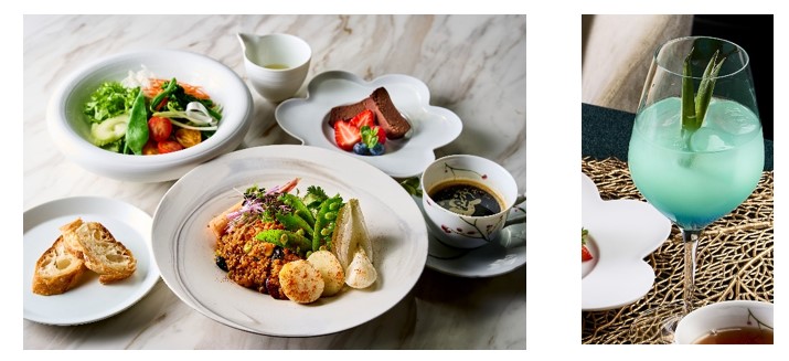 またホテル1階レストランCHAPTER THE GRILLでは、体に優しいPlant Based(植物性由来食材のみ使用)のランチコースや、京藍のブルーにちなんだカクテルをご用意し、五感で自然の恵みを体感いただけます。