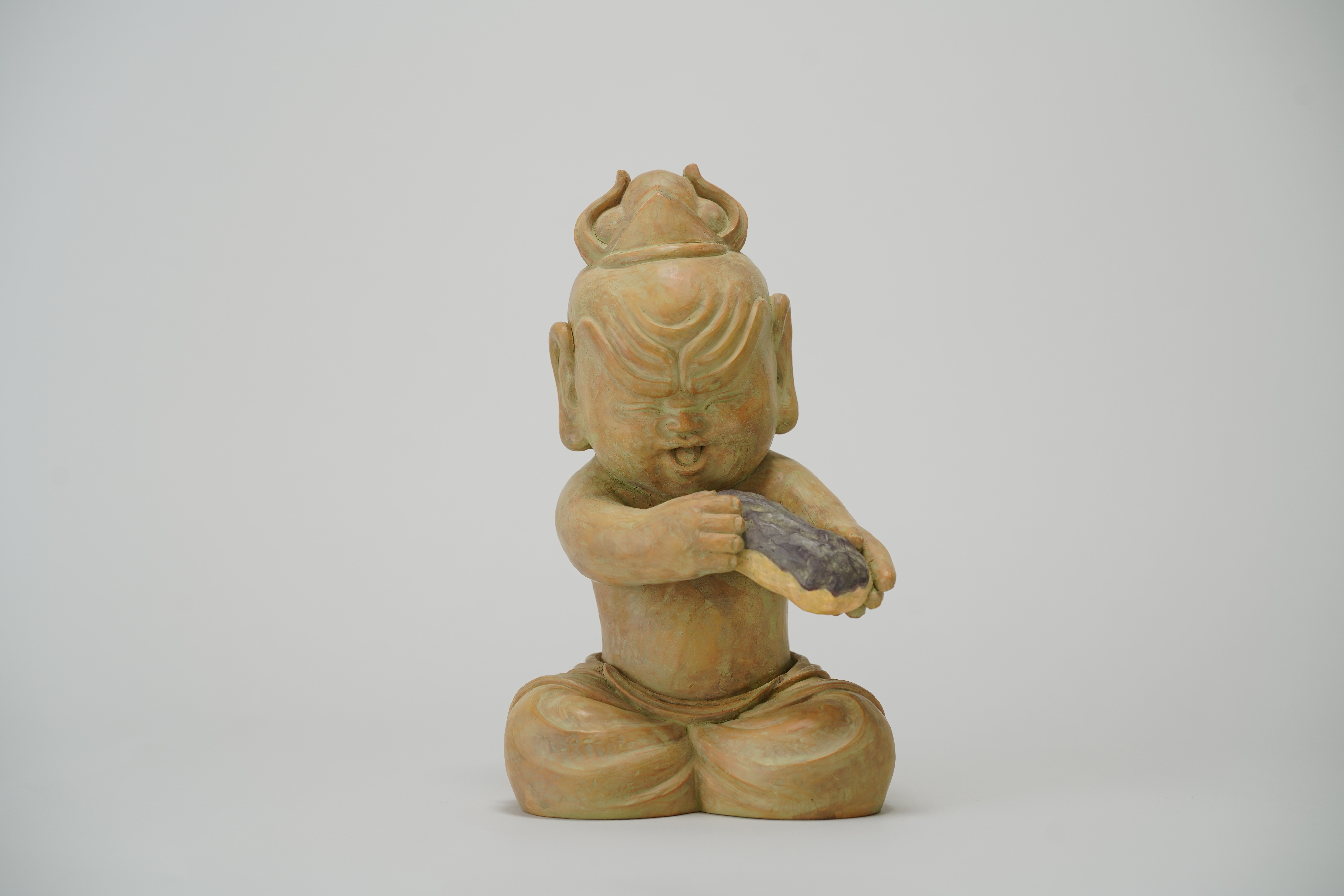 仏像達を拝む習慣も少なくなったので、きっと仏像達は逆に暇を持て余しているだろうな。そんな思いから「今まで私たちを見守り支えてくれた分までゆっくり楽しんで休んでほしい。」という願いを込めて、リラックスした、働いていない「オフの日」の仏像を制作しています。