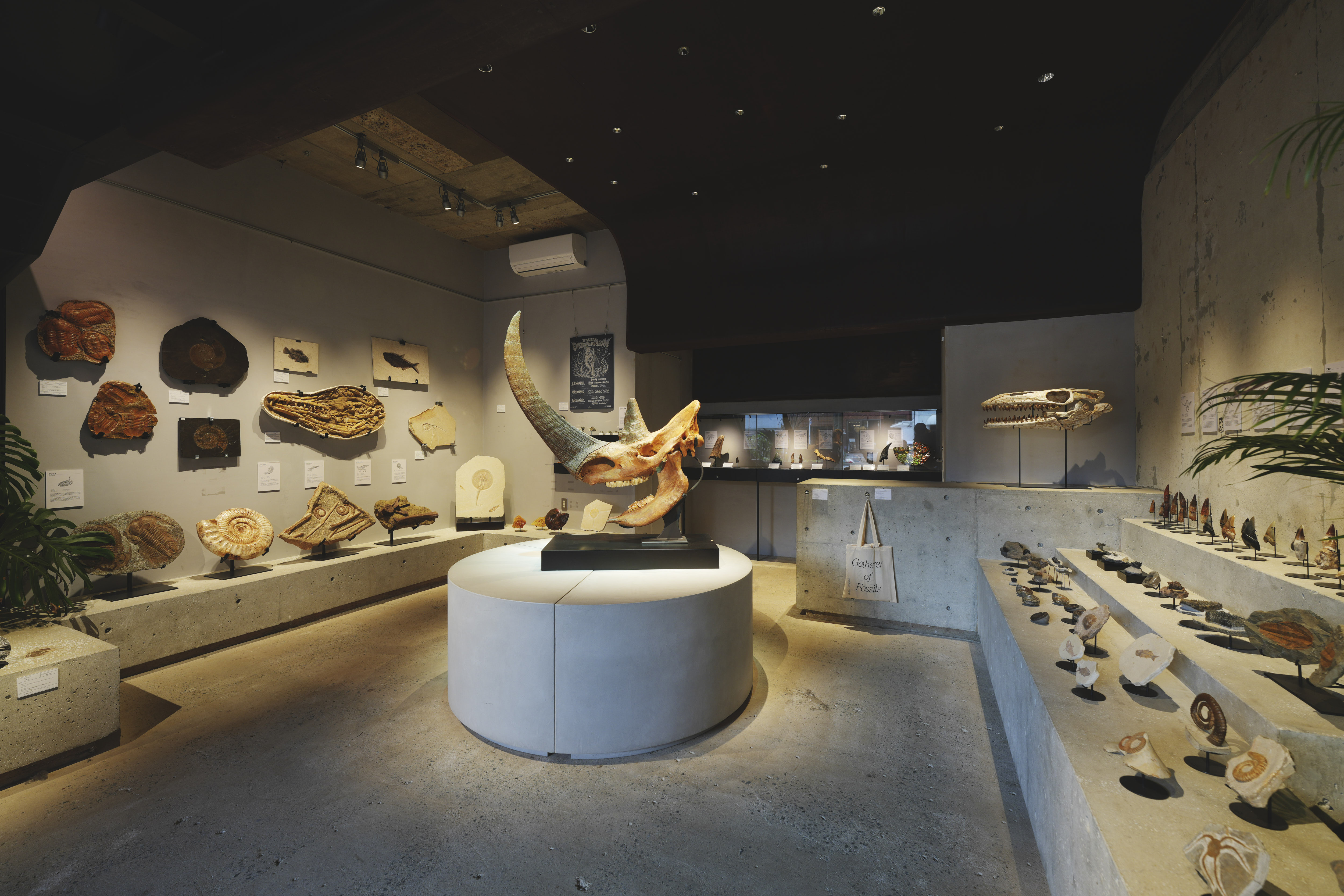 全ての展示化石が購入可能な博物館をテーマにした化石ショップで取り扱う化石は50種類以上。