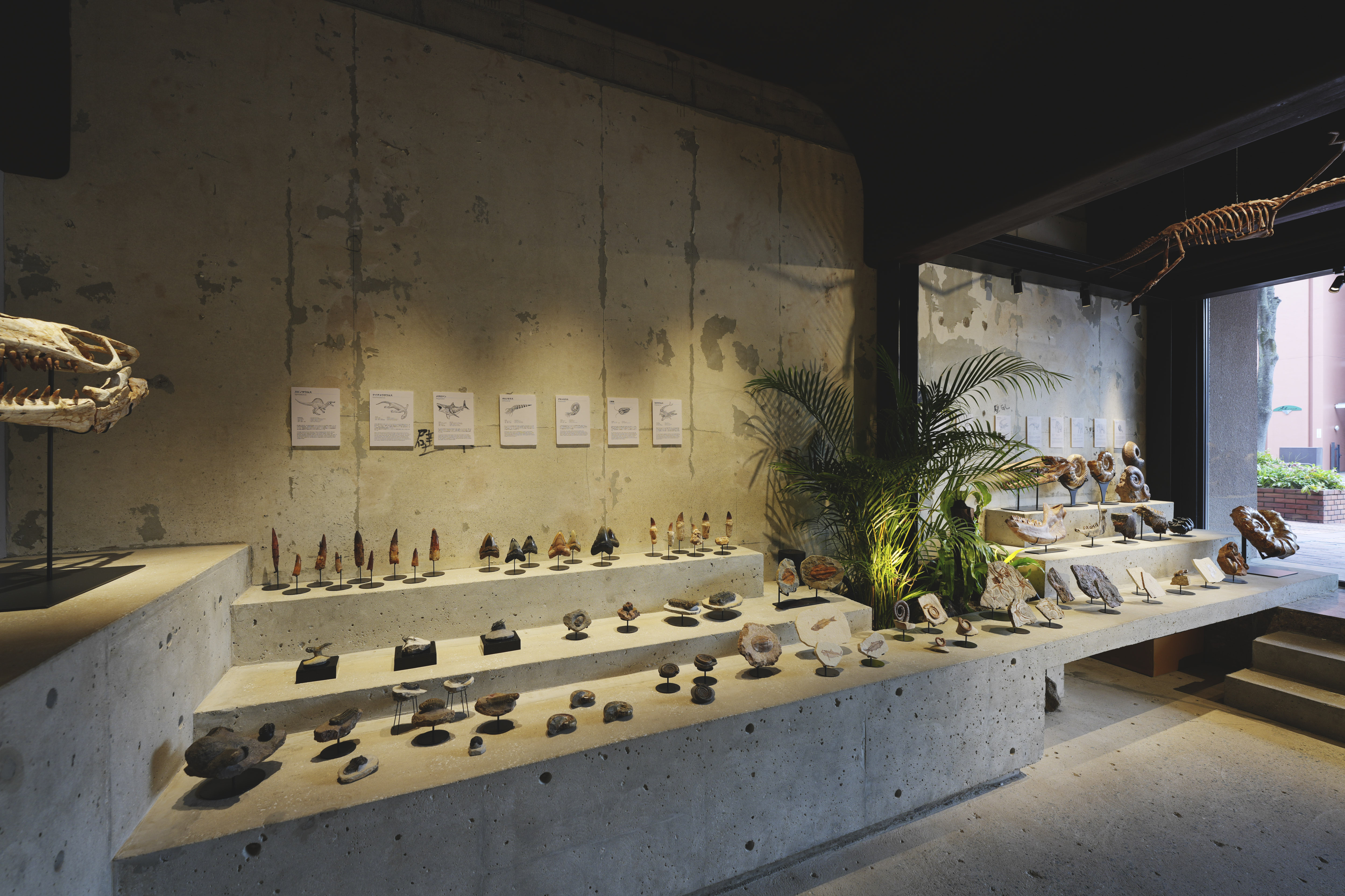 ラグジュアリーな空間において一際異彩を放つ化石たち。アートを鑑賞するような感覚で、太古の生命の痕跡に触れていただけます。