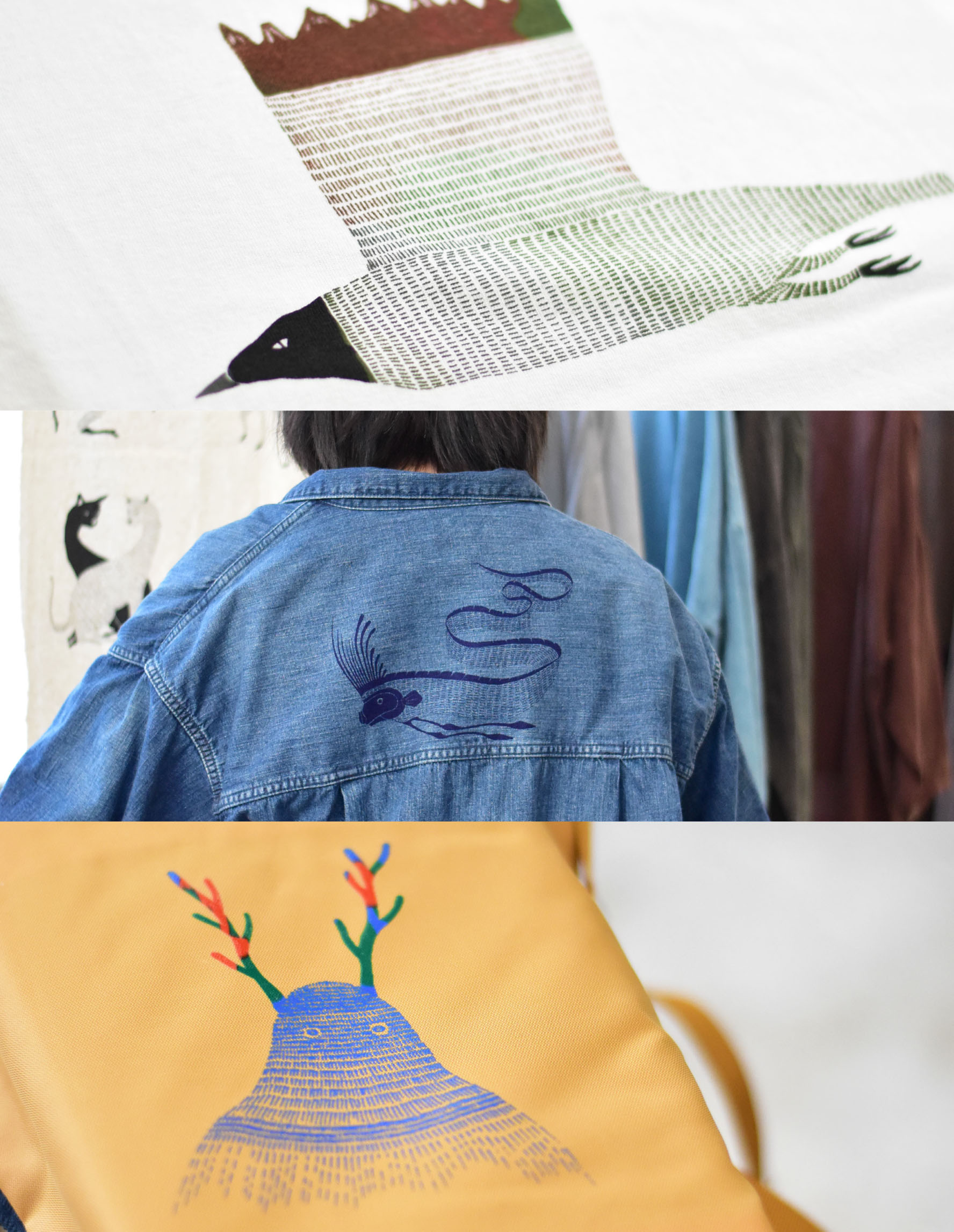 信州を拠点とするデザインユニット。オリジナルイラストの動物たちをTシャツやトートバッグにシルクスクリーンでプリントするワークショップと、シャツやワンピなどの洋服、手ぬぐいなどの販売を予定。