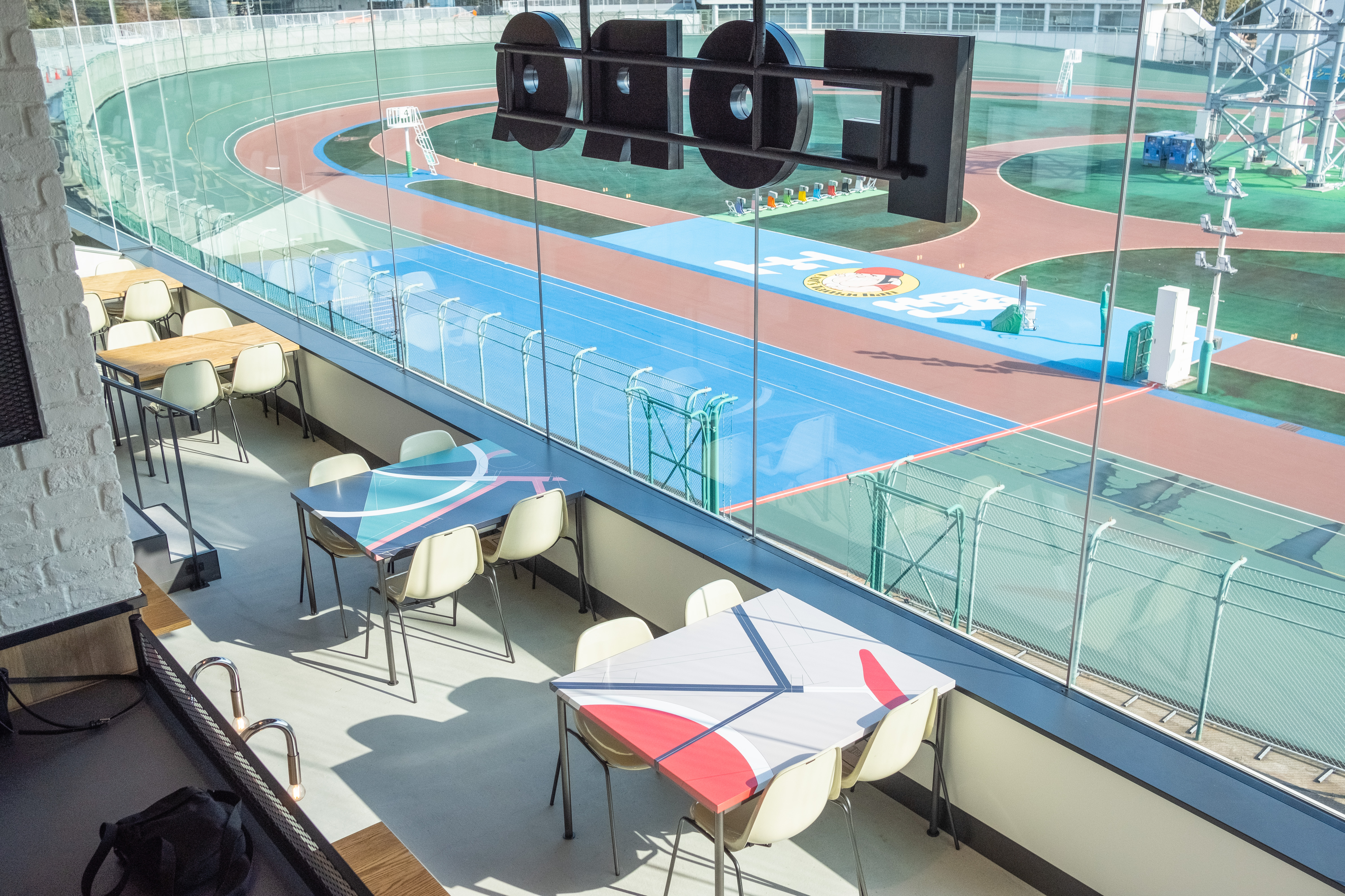 KEIRIN HOTEL 10のレストラン「Restaurant FORQ」の窓一面には、競輪場のトラックが広がっています。