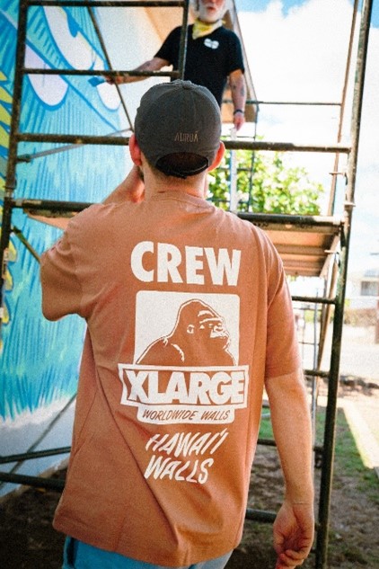 XLARGEは、Hawaii Walls 2025のコンセプトカラー「モカムース」にインスパイアされたコラボレーションTシャツを制作し、会場スタッフや参加アーティストをサポートいたしました。イベントの様子を収めた写真をご紹介します。