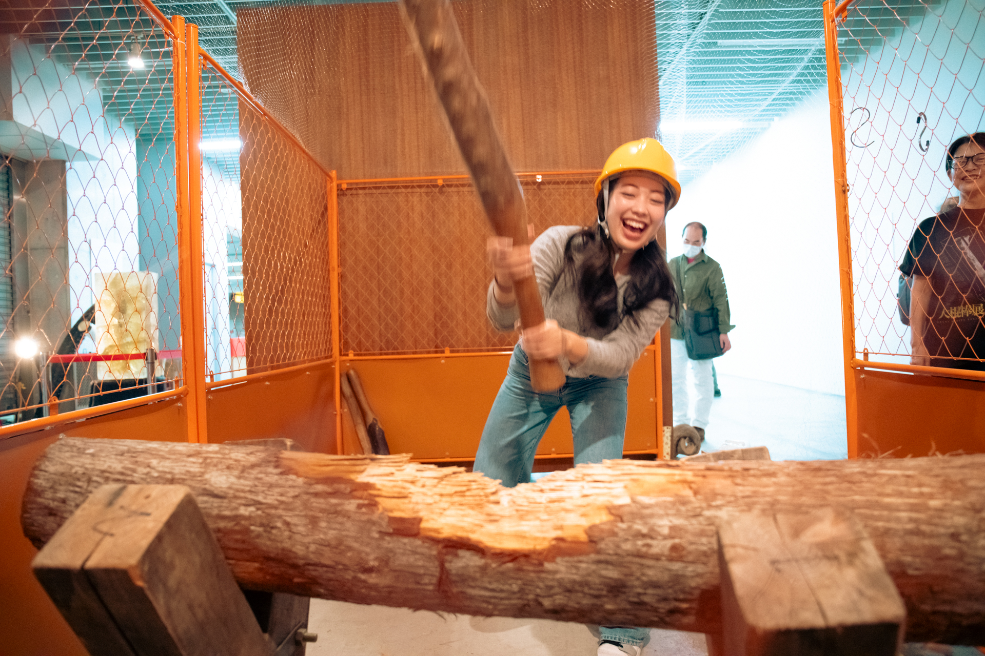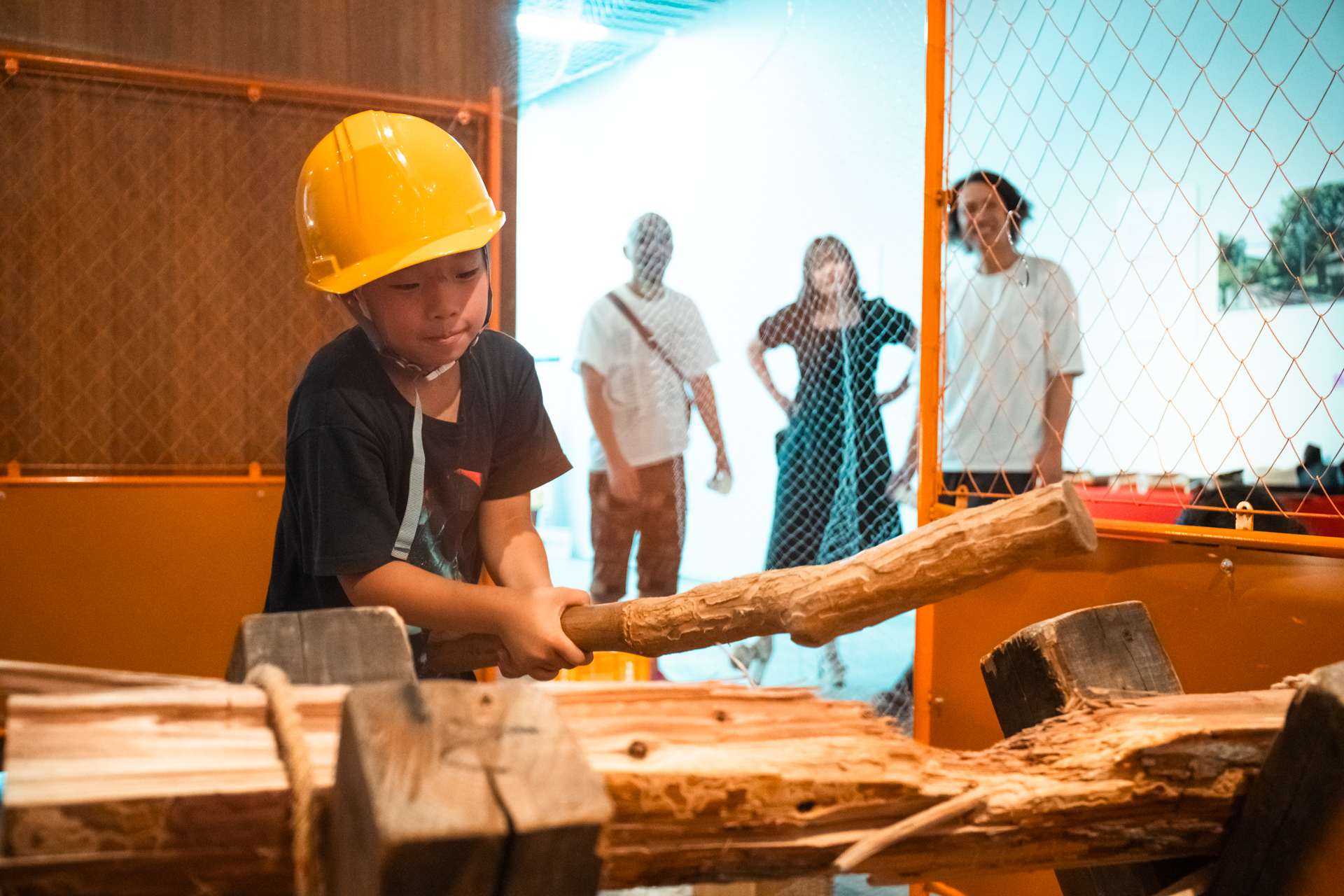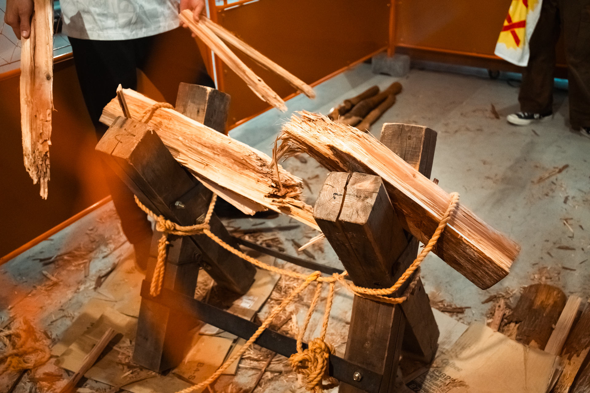 ③試し殴りコーナーの丸太が7日目で真っ二つに!