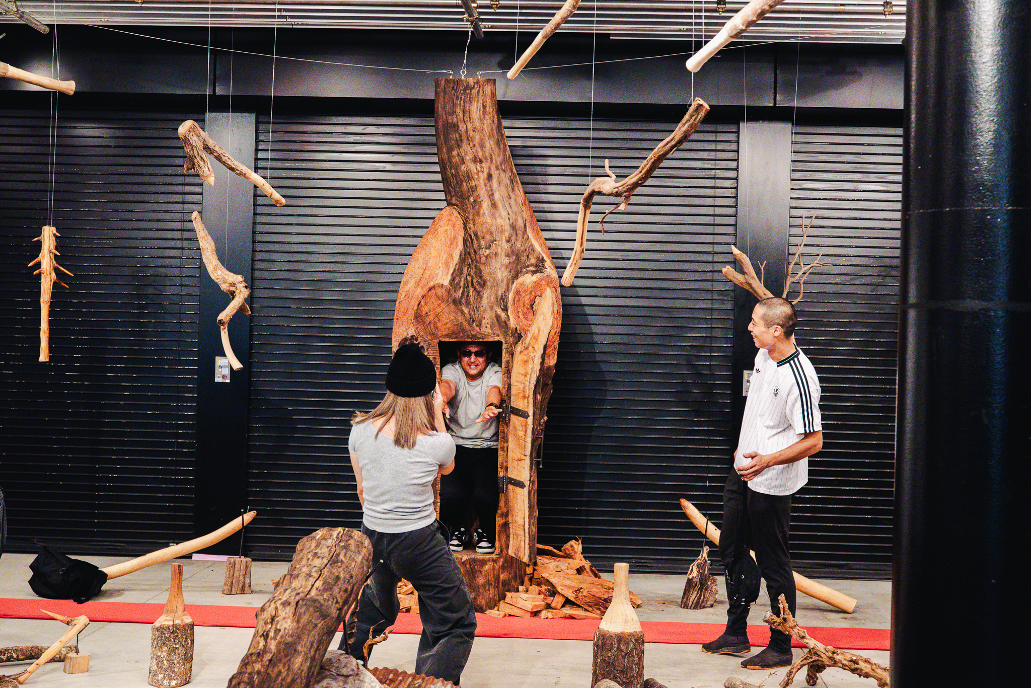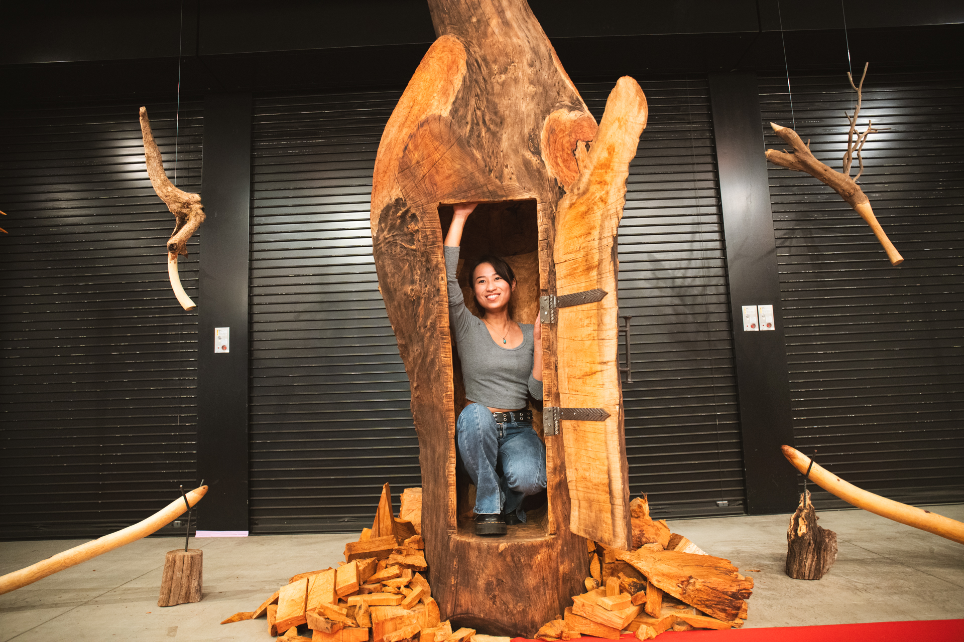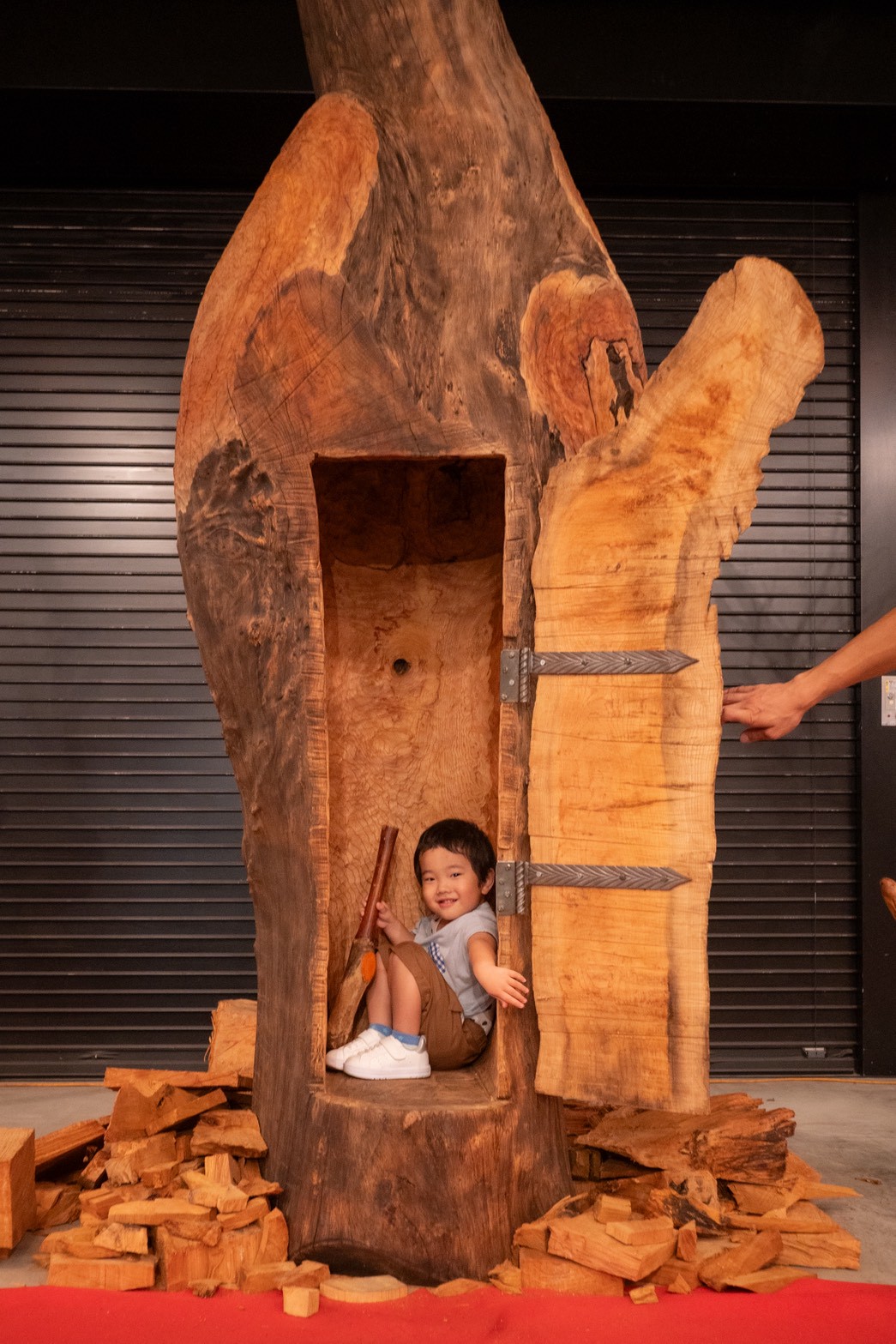 ③試し殴りコーナーの丸太が7日目で真っ二つに!