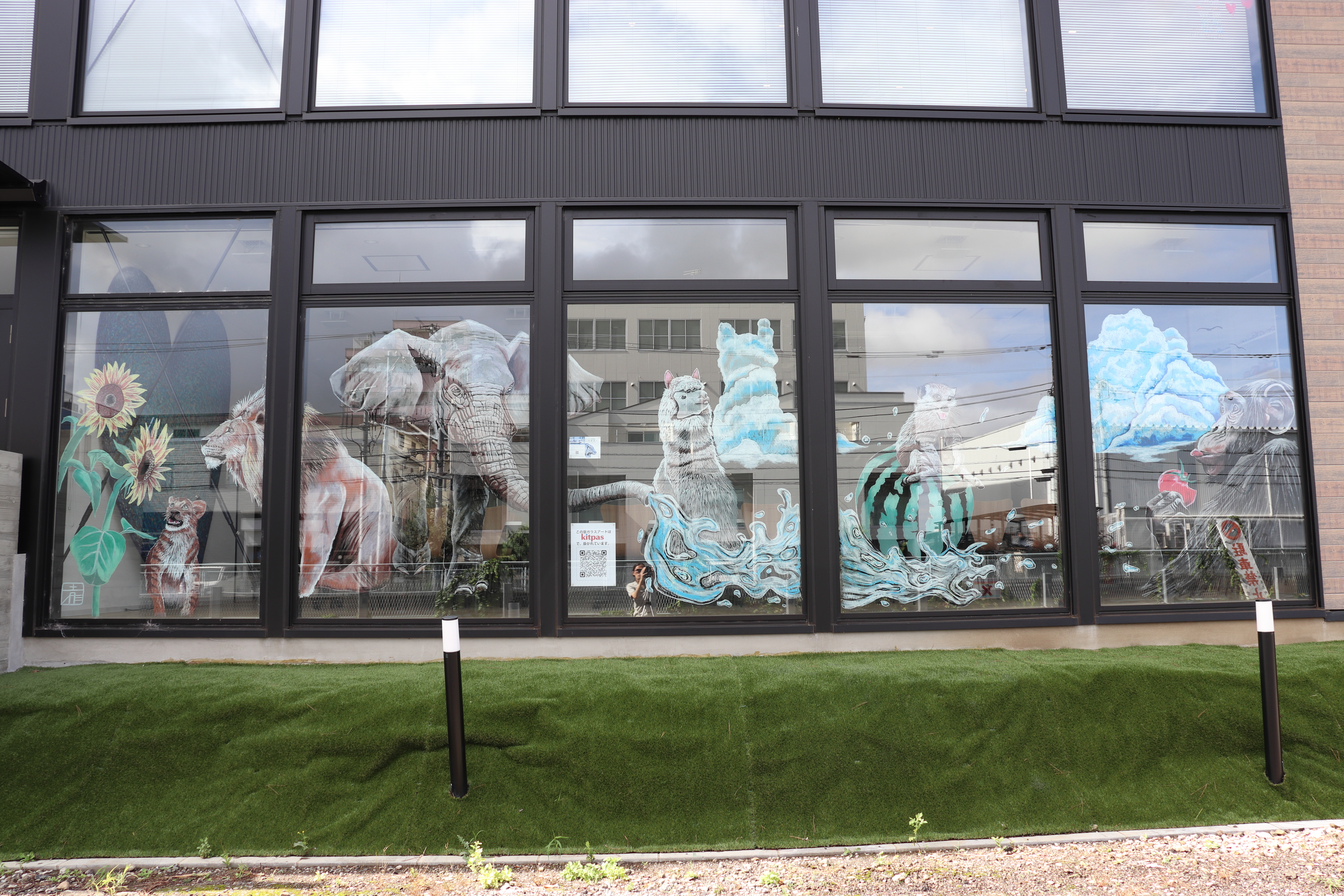 施設の大きな窓を使ってこれだけのアートで発信できるこのキットパスの魅力をたくさんの方に知っていただきたいです。