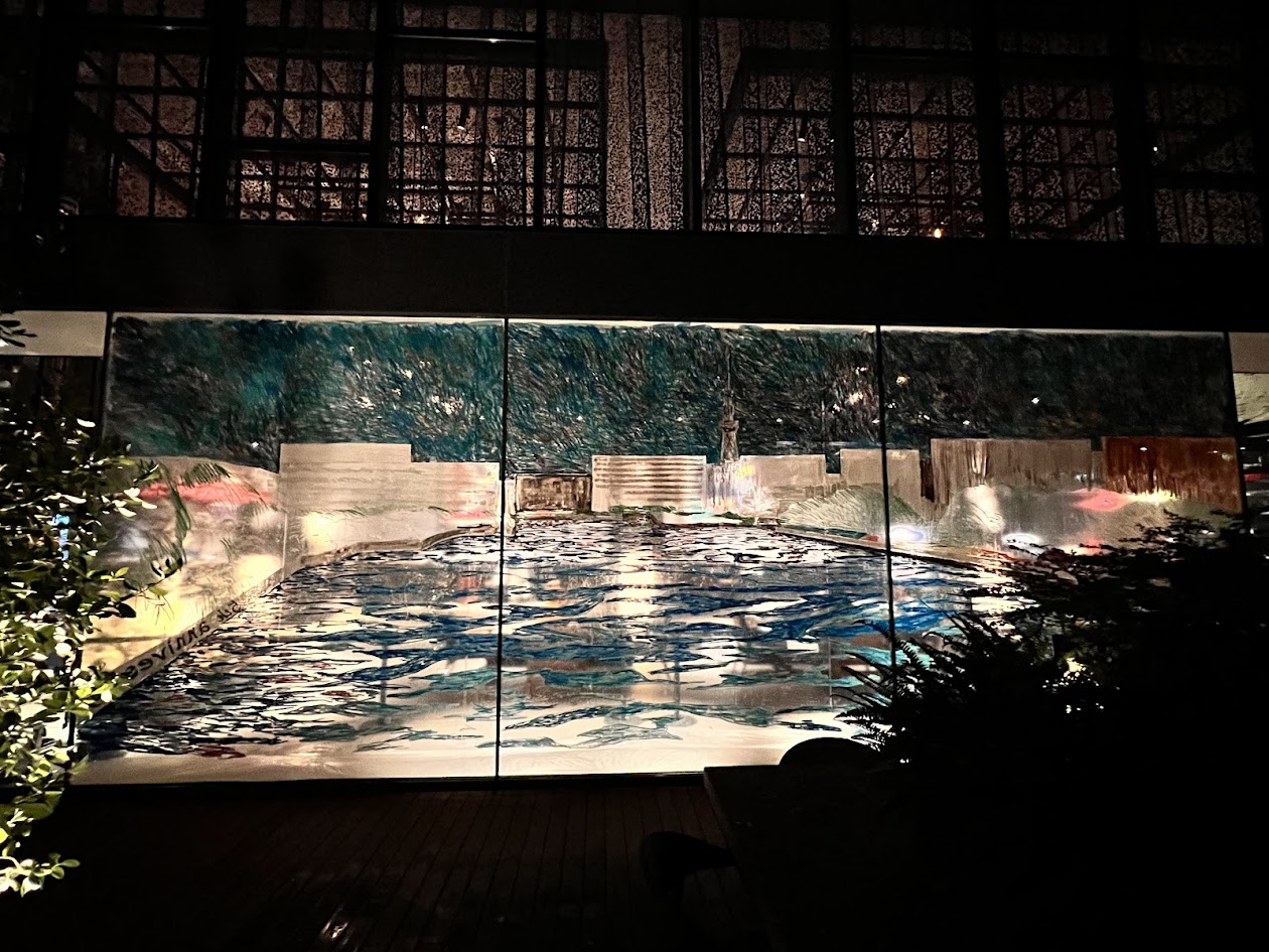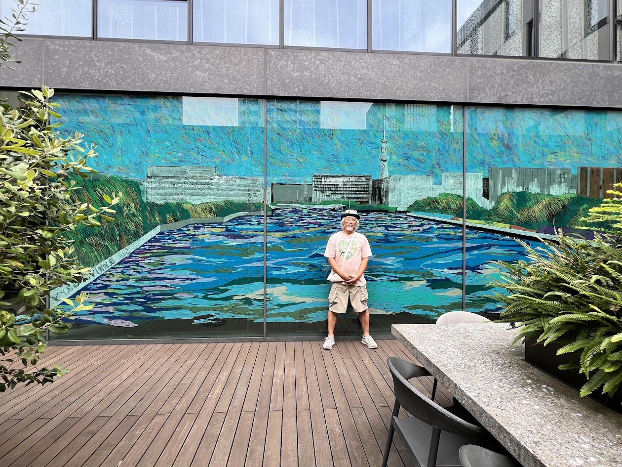 第一弾となる今回は、アーティスト西村公一さんによる「砂潮橋からの眺め」をテーマとしたダイナミックなアートになりました。2日間計17時間を超えて描かれた作品は、ホテルを訪れる国内外からのゲストの目を引くものになりました。