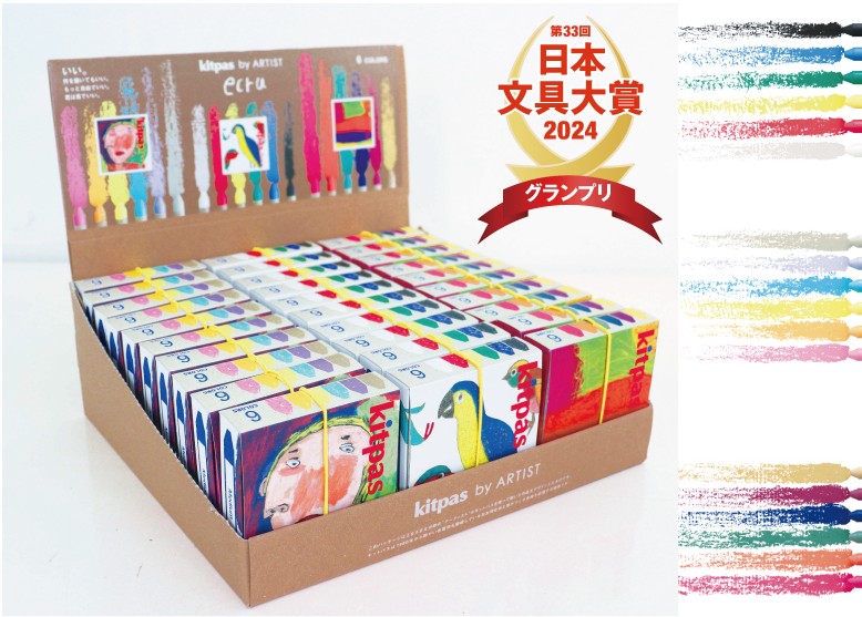 1937年(昭和12年)創業の文房具製造会社。粉の飛散が少ない炭酸カルシウム製チョークを日本で初めて製造し、「ダストレスチョーク」のブラントでシェア70%を占める定番商品となる。2005年には窓ガラスなどの平滑面に発色良く描け、水拭きで消すことができる「キットパス」を発売し、今年で20周年を迎える。本商品は2024年には【日本文具大賞2024】でグランプリを獲得した「kitpas by ARTIST ecru」、【iF design award】、【キッズデザイン賞】(2023年)など国内外で多くの受賞歴がある。
