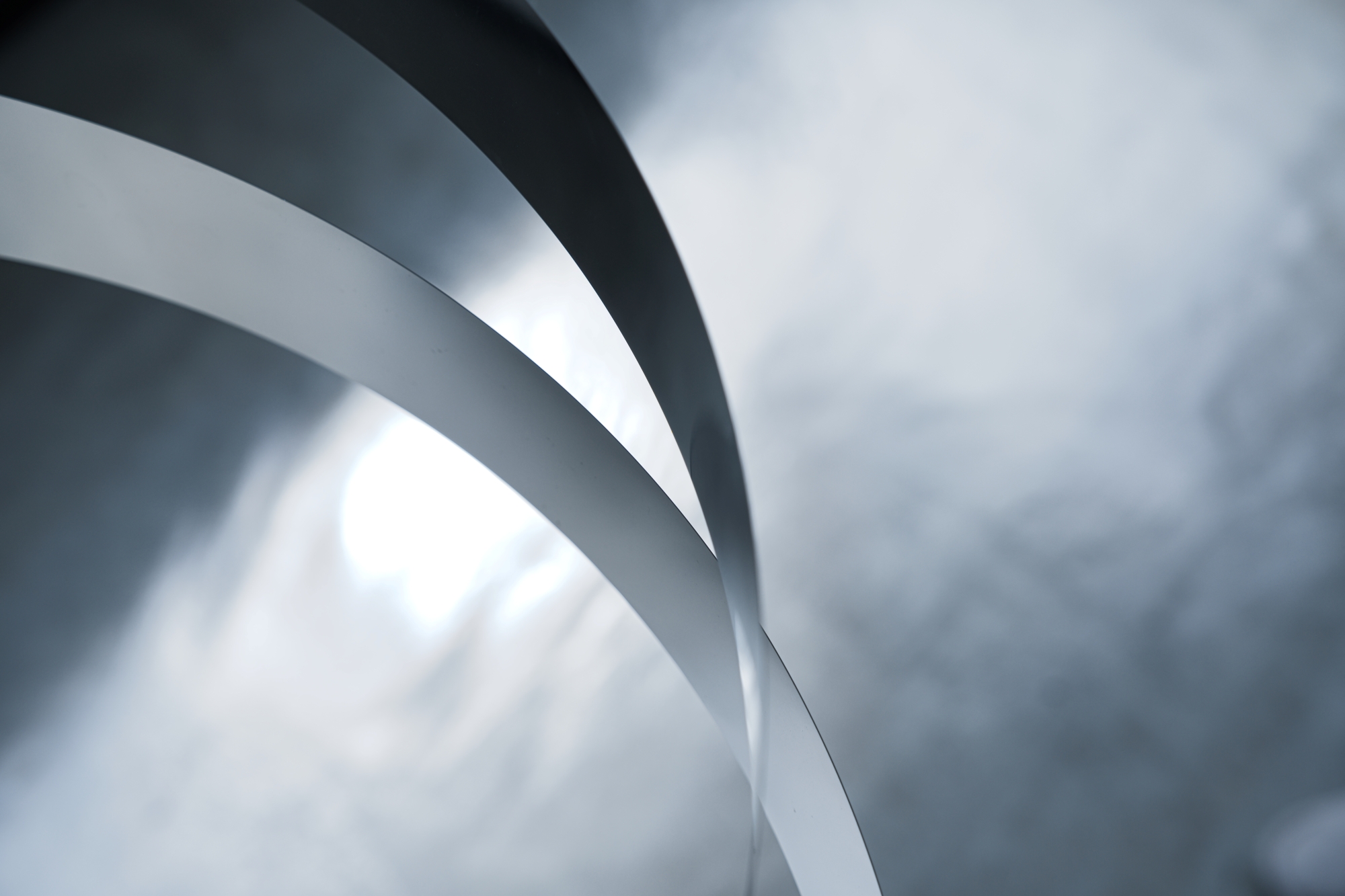 螺旋(らせん)の律動は、機械式腕時計を分解した際に出会った動力ぜんまいやひげぜんまいの存在から着想を得た作品です。薄い金属片が巻かれたその形は、単なる機構部品にとどまらず、時を駆動する力とリズムを宿す器のように思えました。そっと持ち上げると、手のわずかな動きを受け取り、今にも鼓動を始めるかのように揺れ動いたのです。複数のアームによって支えられる長くしなやかなステンレス板の螺旋構造。各アームはそれぞれが独立して伸縮することで螺旋に緊張や緩和をもたらします。また、そのたわみは全体に干渉し合うことで、刻一刻と新たな秩序を生み出し続けます。