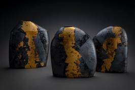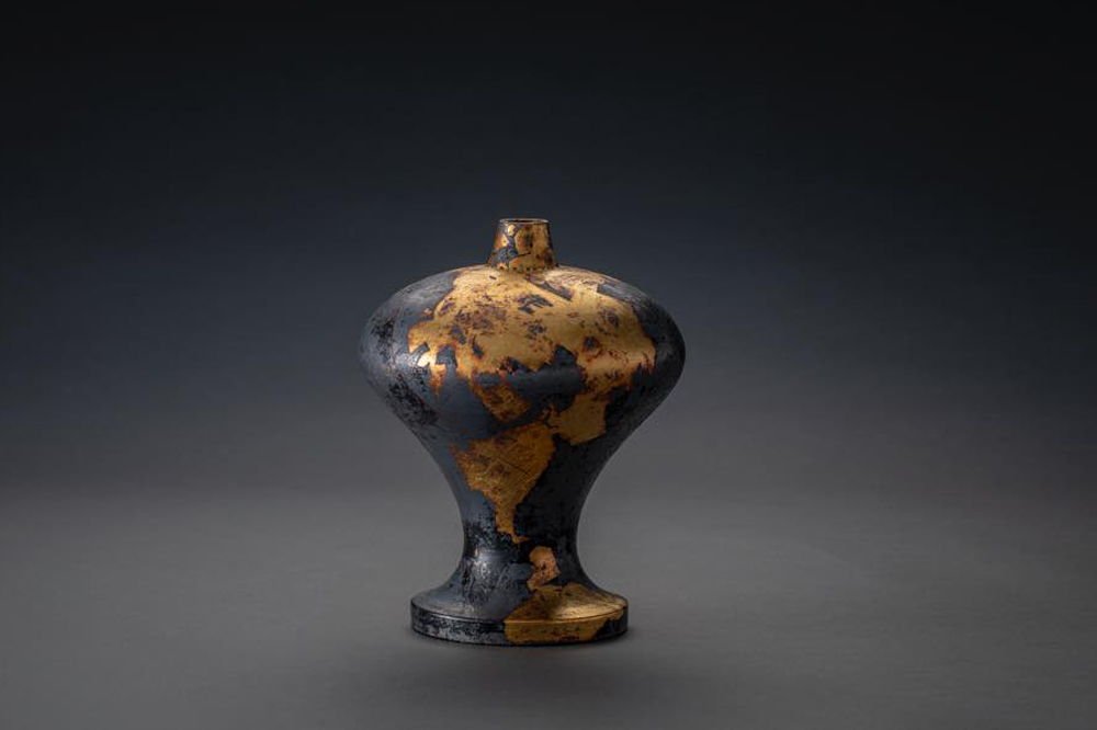 金銀彩 花器(左から、W17.6×D8.5×H21.2cm、W20.3×D9×H21.5cm、W20.2×D8.8×H22.6cm)
