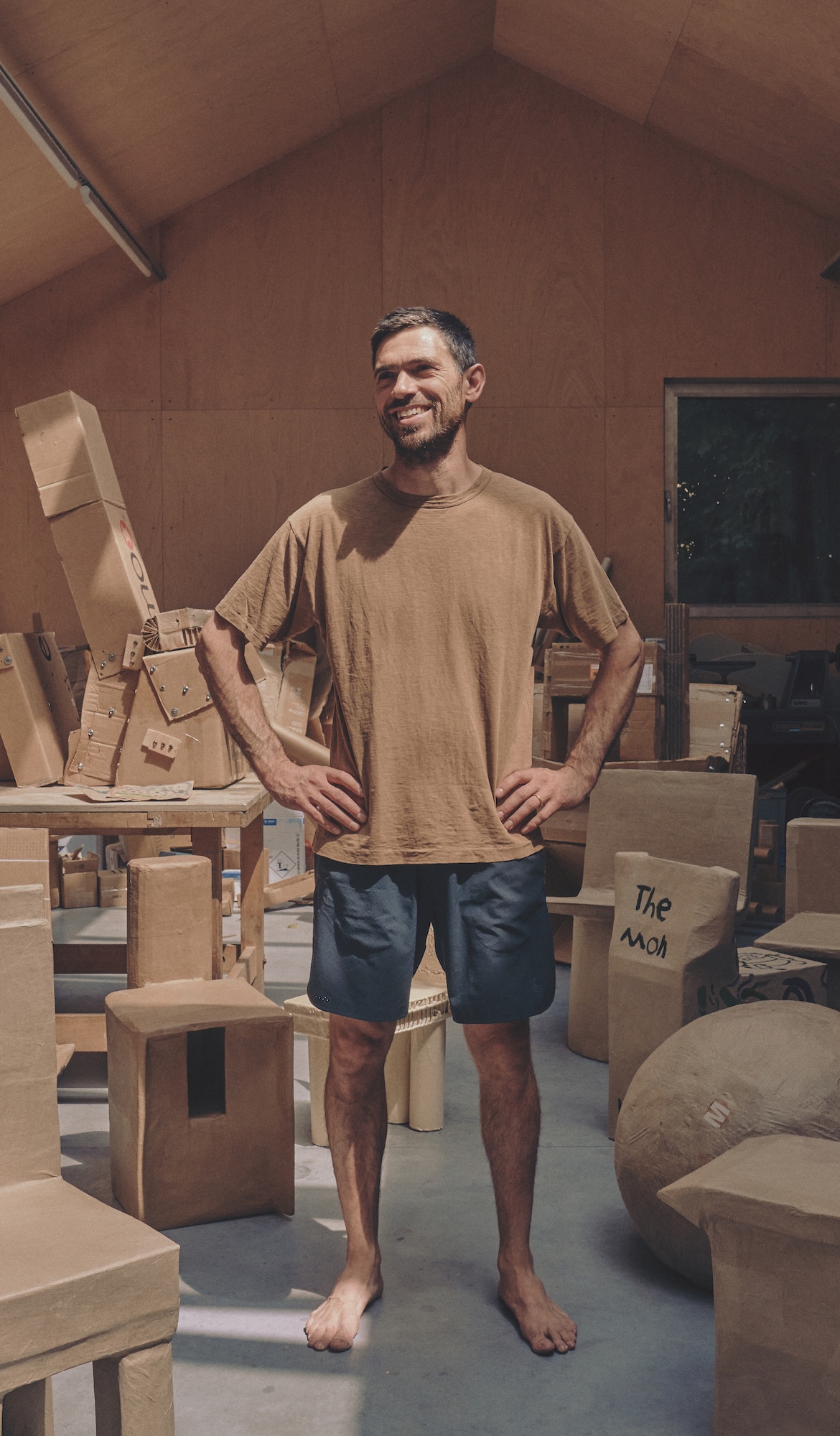 1980年生まれ。英国コーンウォール生まれ。家具やプロダクトデザインにおいて、その革新性と実験的な手法で広く評価されているデザイナー。伝統的な職人技と前衛的なデザイン哲学を融合させ、自然に囲まれて育った経験が作品にも色濃く反映されている。ロンドンのロイヤル・カレッジ・オブ・アートで学んだ後、独自のデザイン手法で注目を集め、素材とプロセスの可能性を探求し続けている。石や金属、発泡材、段ボールなど、あらゆる素材を用いて、素材本来の性質を引き出す作品を制作。生まれる作品は、触覚的で力強く、機能性と芸術性が融合したユニークな存在感を放つ。