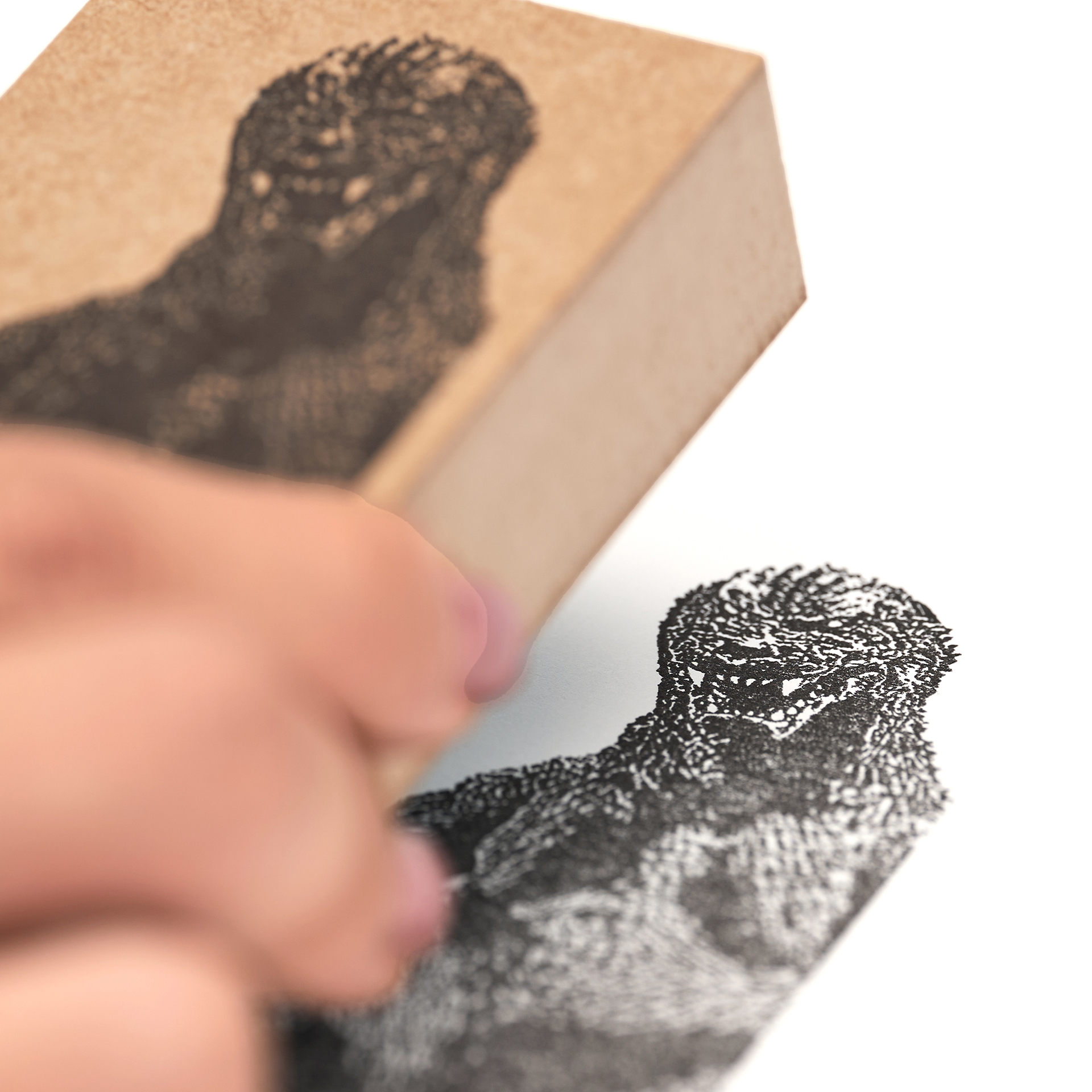 その第3弾となる本作では、1954年の初代から2023年の『ゴジラ-1.0』まで、時代ごとに進化してきたゴジラの造形と世界観を、ゴム印の印面で緻密に表現しました。