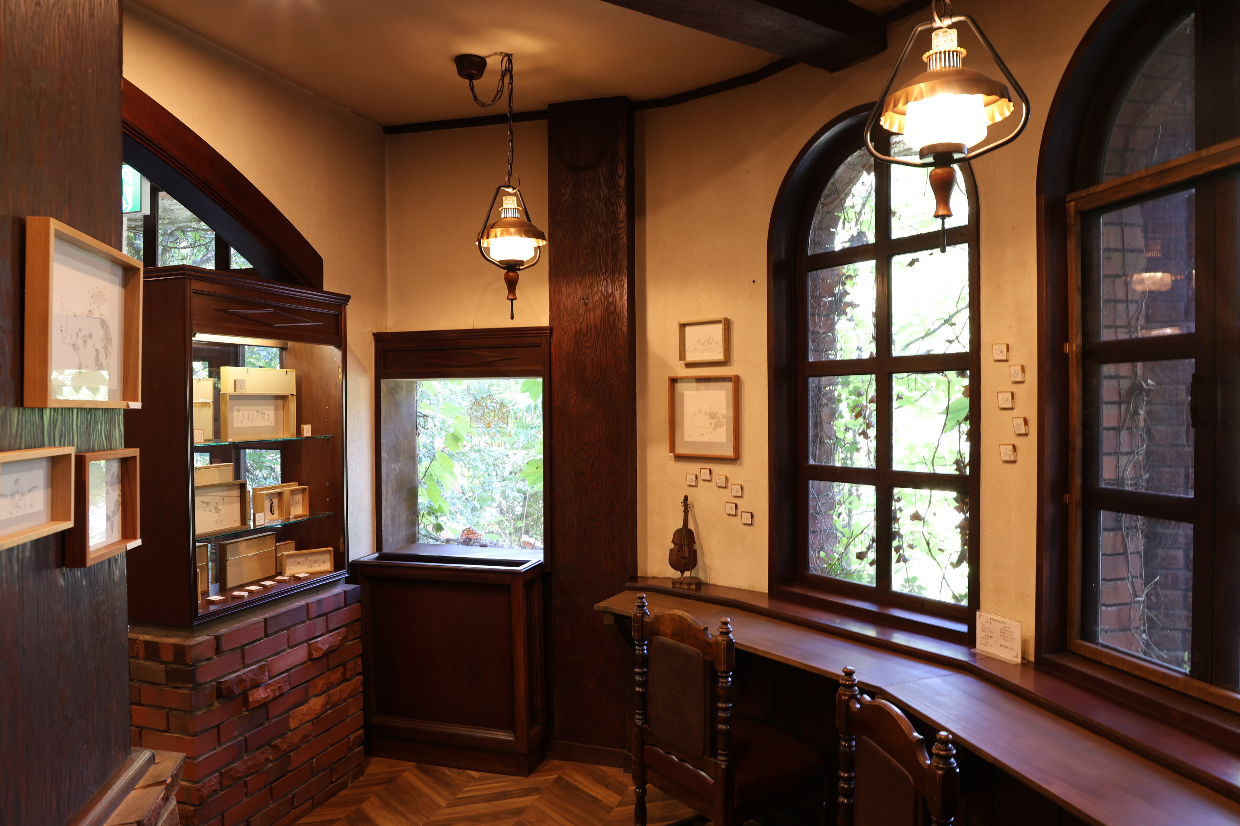 レストランだった建物をそのまま使用したレトロな空間に、仕掛け絵本を中心に懐かしい作品から珍しい作品まで集めました