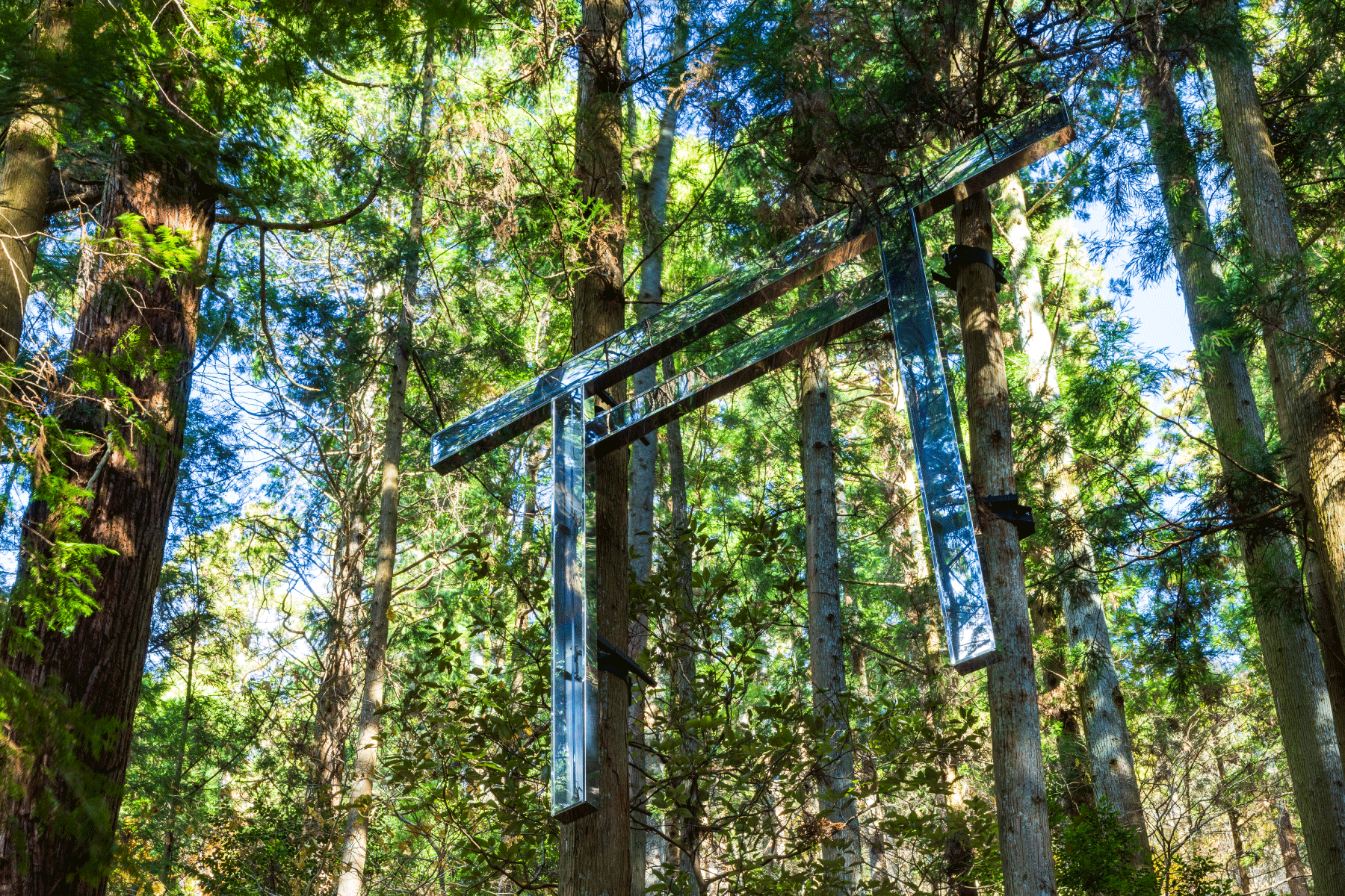 《鏡界の鳥居》は、SOWA DELIGHT Inc.代表・渡邉辰吾が中之条ビエンナーレ2023で発表した作品です。平安時代から八十四代にわたり続く、SOWA DELIGHTの思想的ルーツである赤城神社という存在から強いインスピレーションを受けて制作されました。
