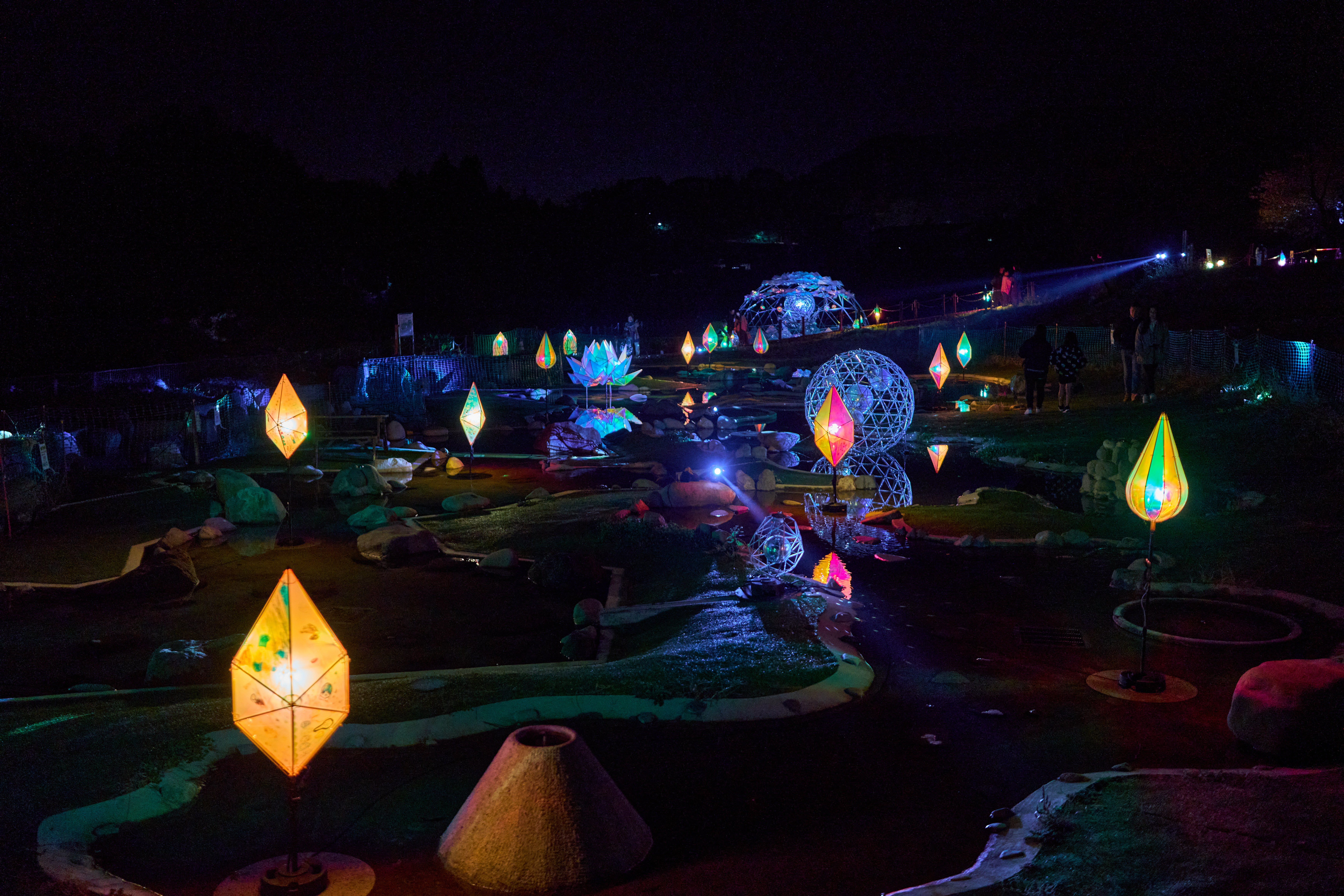 自然とアートが調和する幻想的な光の空間が、水紀行館から温泉街まで広がります。