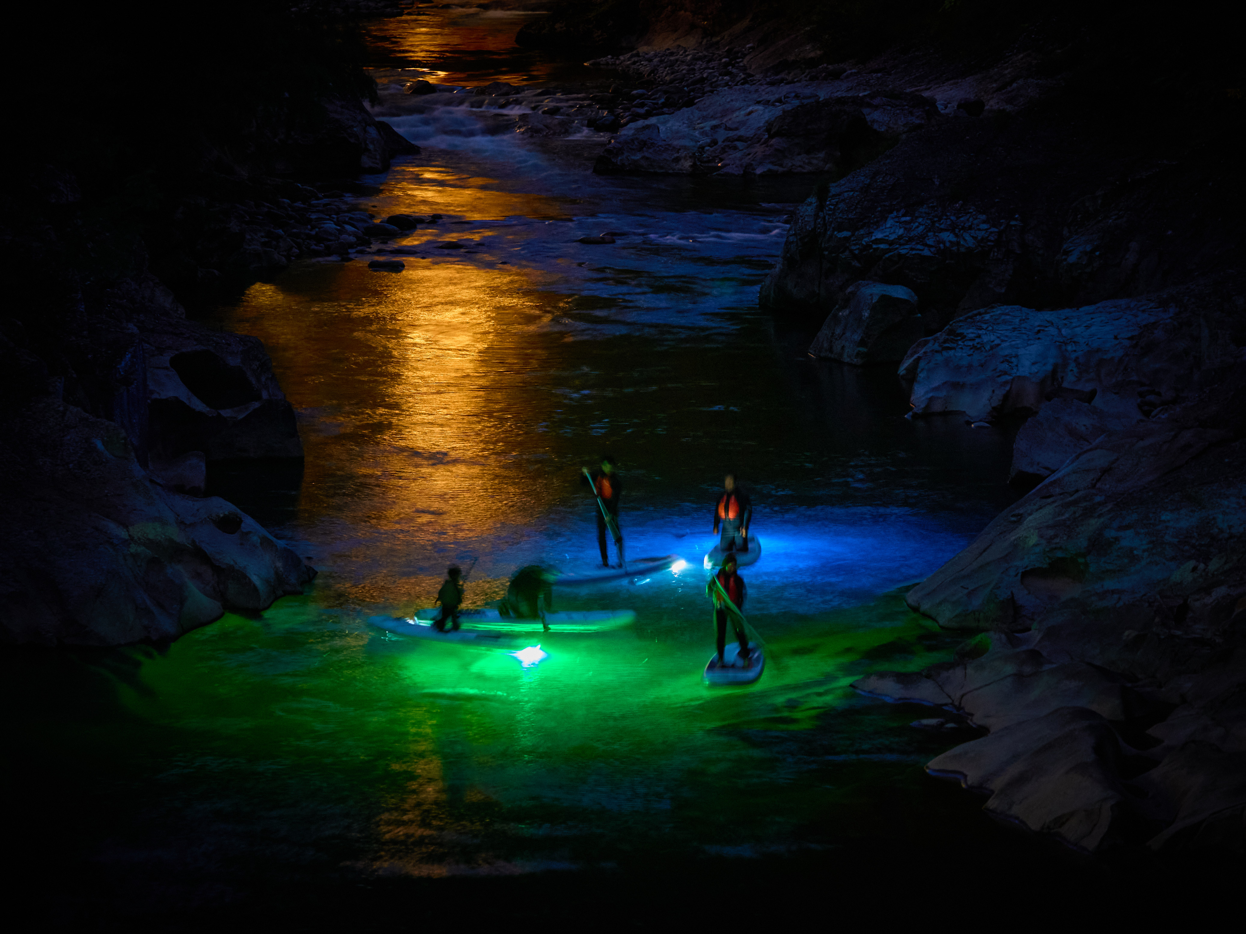 今年もみなかみに拠点を置くイベント制作会社VERTREKプロデュースのもと、アートチームMIRRORBOWLERによる幻想的な光の演出に加え、町内の子どもたちが参加する「こども光LABO」、紅葉橋の下にはライトアップされたSUPで渓谷を楽しむ「光のナイトSUP」エリア、