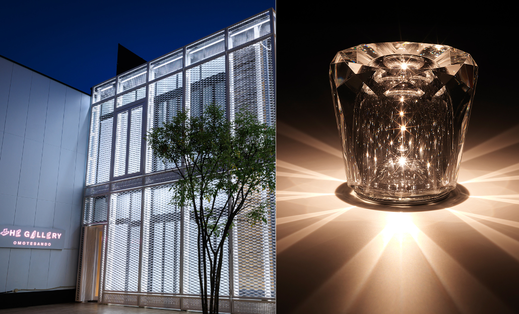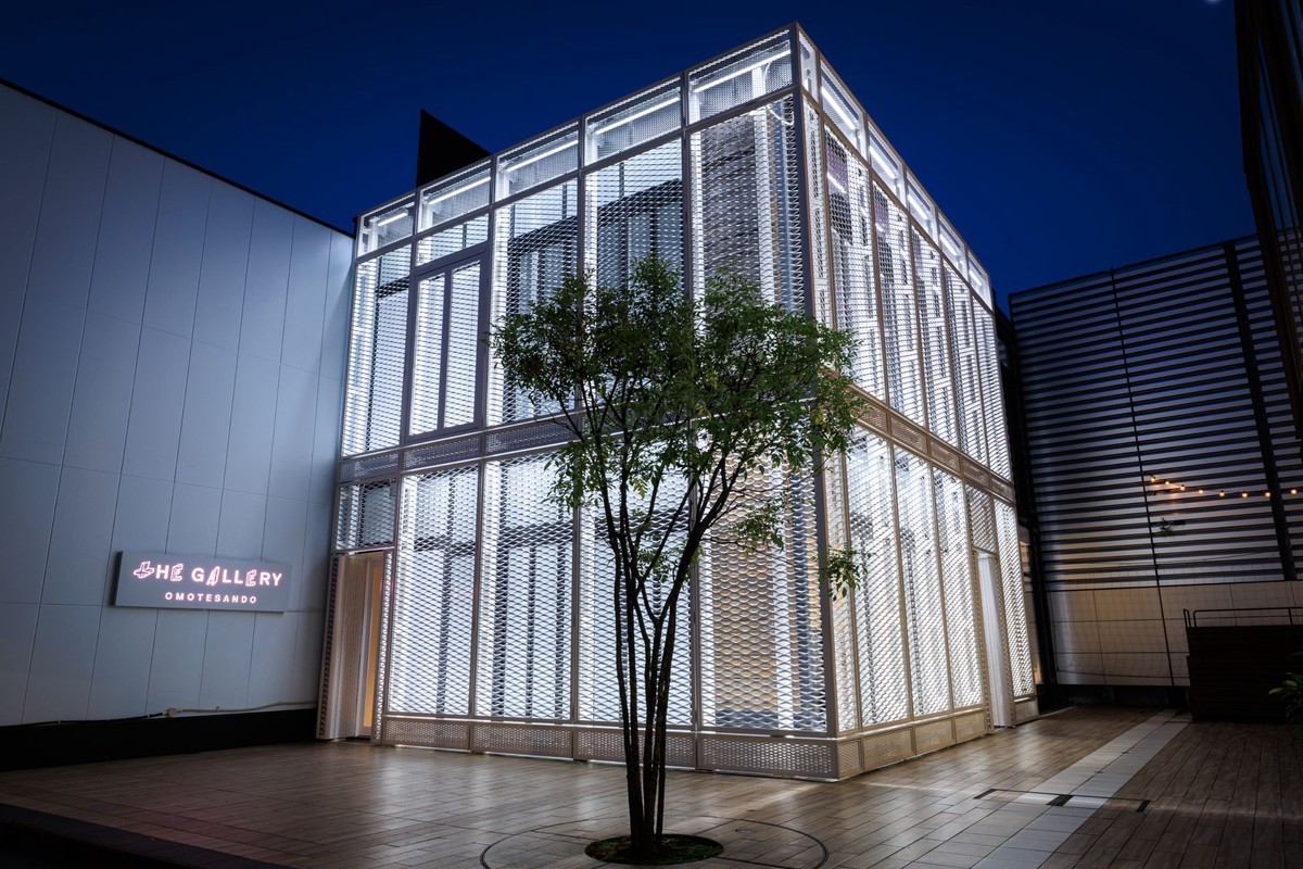 ⽣まれる表参道。その欅並⽊から⼩径を⼀本⼊ると、夜空に浮かぶガラスの⽴⽅体 〈tHE GALLERY OMOTESANDO〉 が姿を現します。 国内外の気鋭アーティストが個展を開き、ハイブランドのプライベートイベントも⾏ われる― まさに “アートとファッションの発信拠点” です。