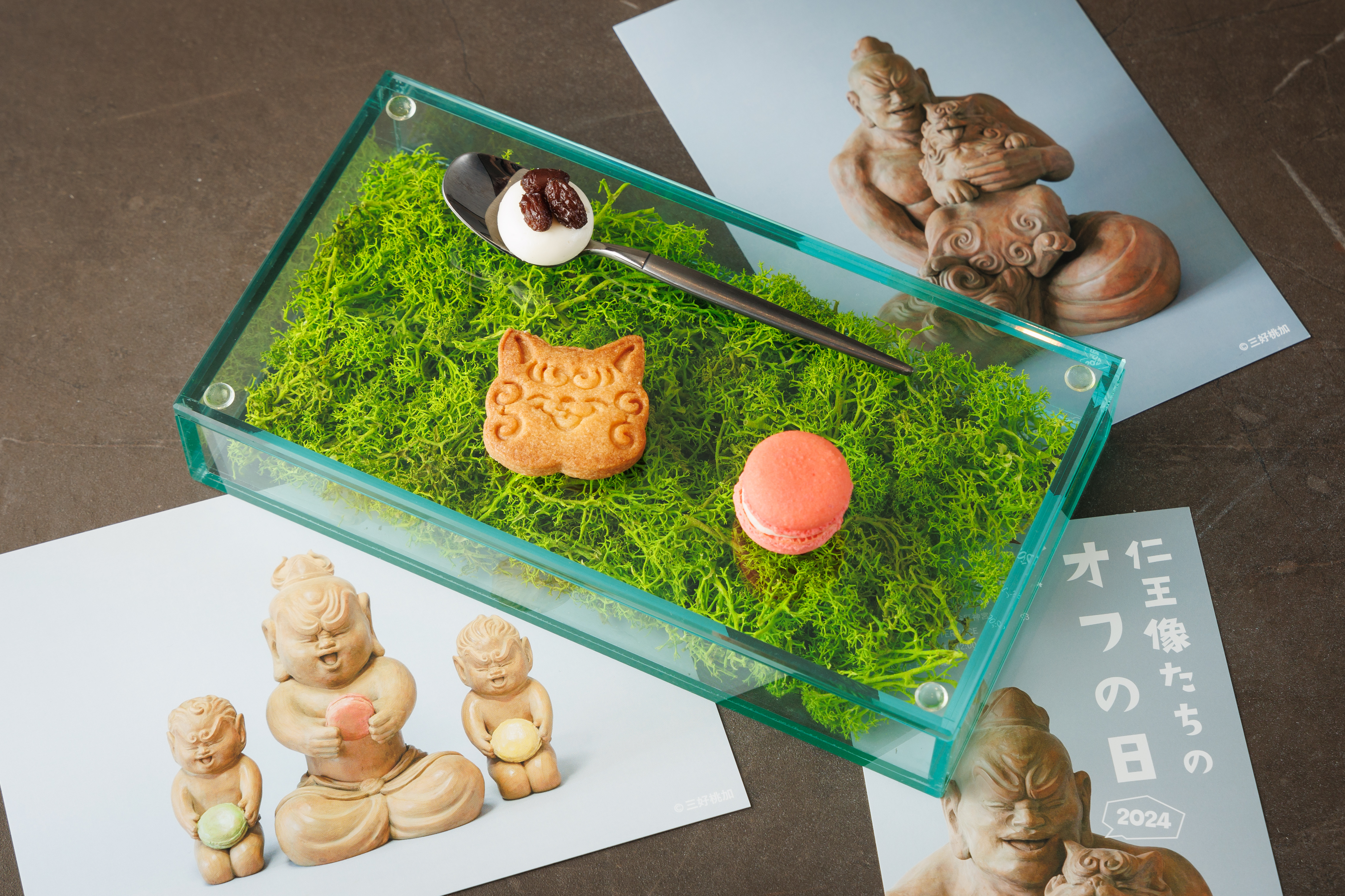 ギャラリーは毎回、出展アーティストが掲げる テーマ を軸に空間を構成。サロン覺のシェフとパティシエも出展アーティストと面談しヒアリング後、同じテーマや背景、ストーリーをオマージュしてメニューをゼロから設計し、〈⾷×アート〉の物語 を五感で表現します。