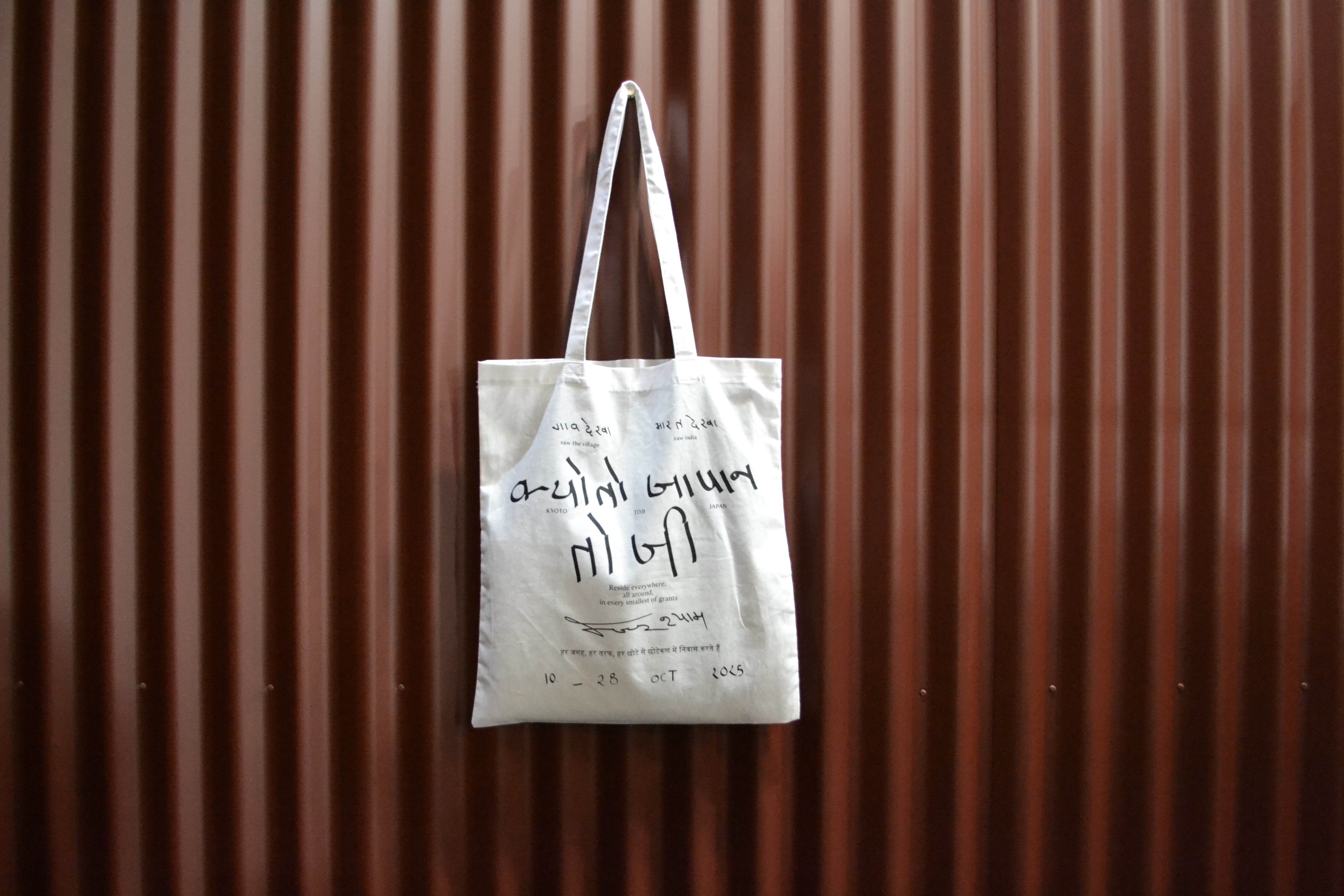 会場では、Bhajju Shyamの作品や物語をモチーフとしたアイテムを数量限定で販売しています。図録やポストカード、トートバッグ、BRÚ NA BÓINNEとのコラボレーションTシャツのほか、クッションカバーや複製原画など、日常をアートで彩るアイテムとして好評をいただいています。