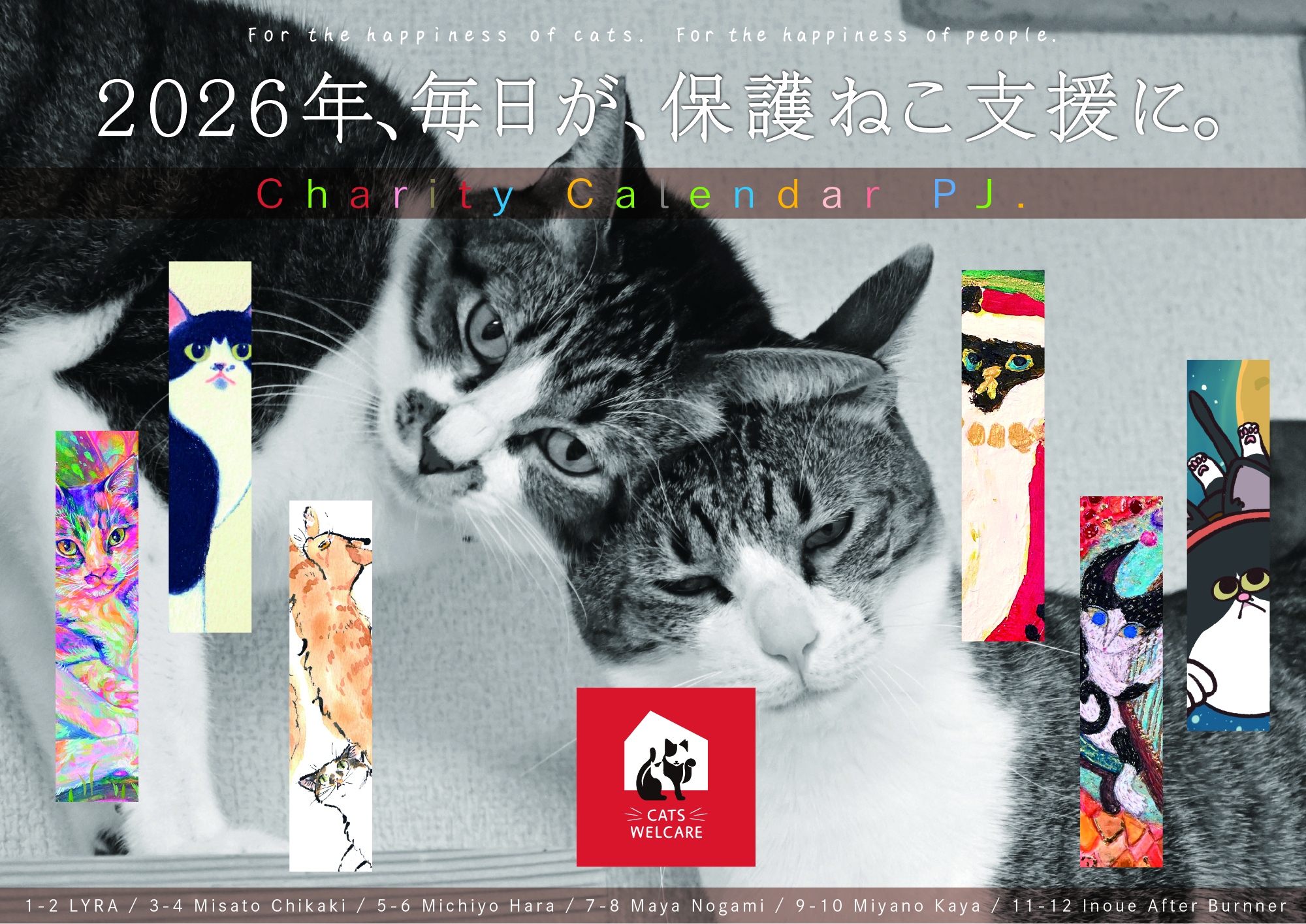 NPO法人CATS WELCAREが、関西で活躍する6名の猫作家とコラボしたチャリティーカレンダー。2026年を「猫づくし」にする、写真集のように楽しめるカレンダーと特典セットをお見逃しなく!