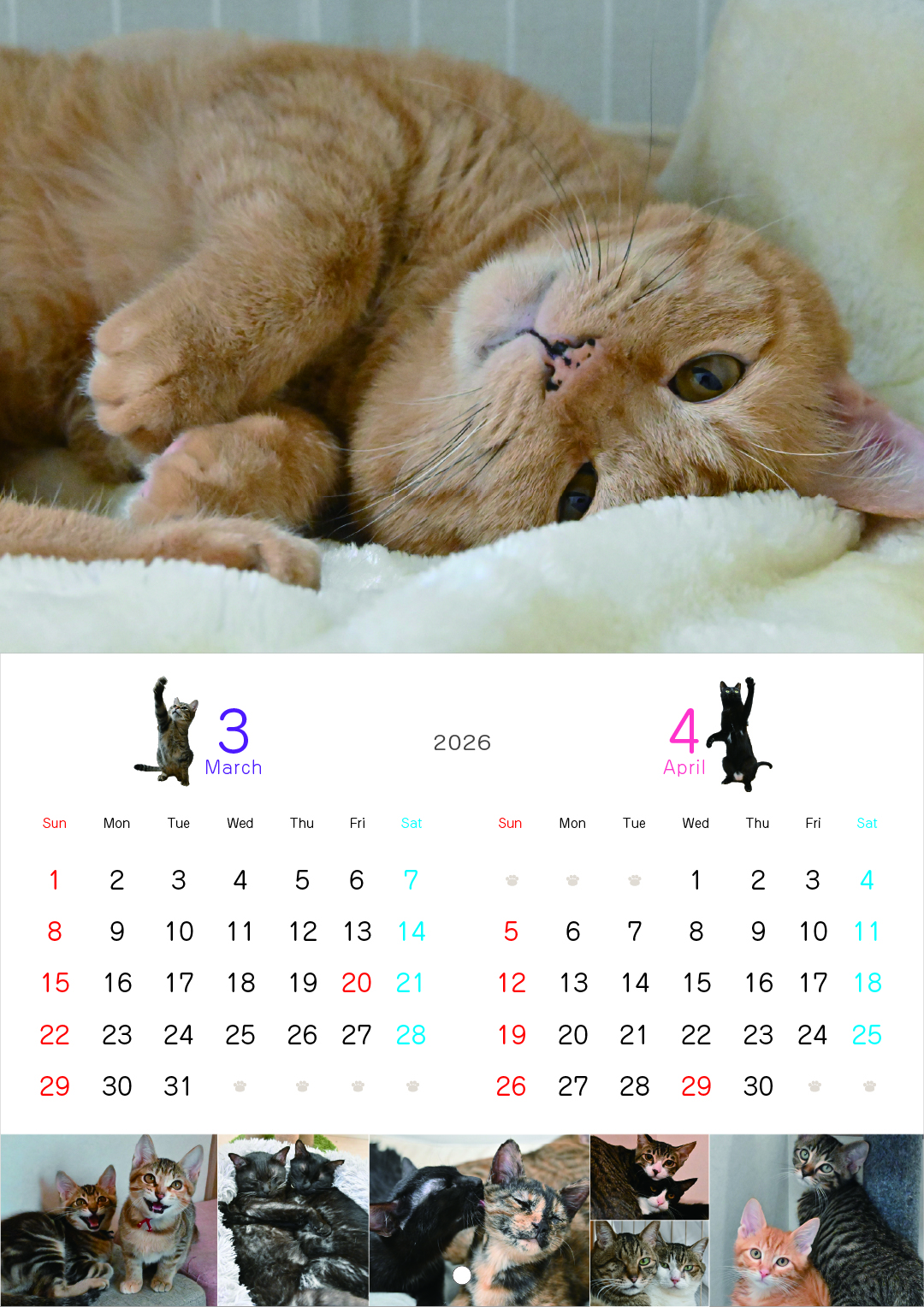 猫たちの幸せを支える、2026年のオリジナルカレンダーです。