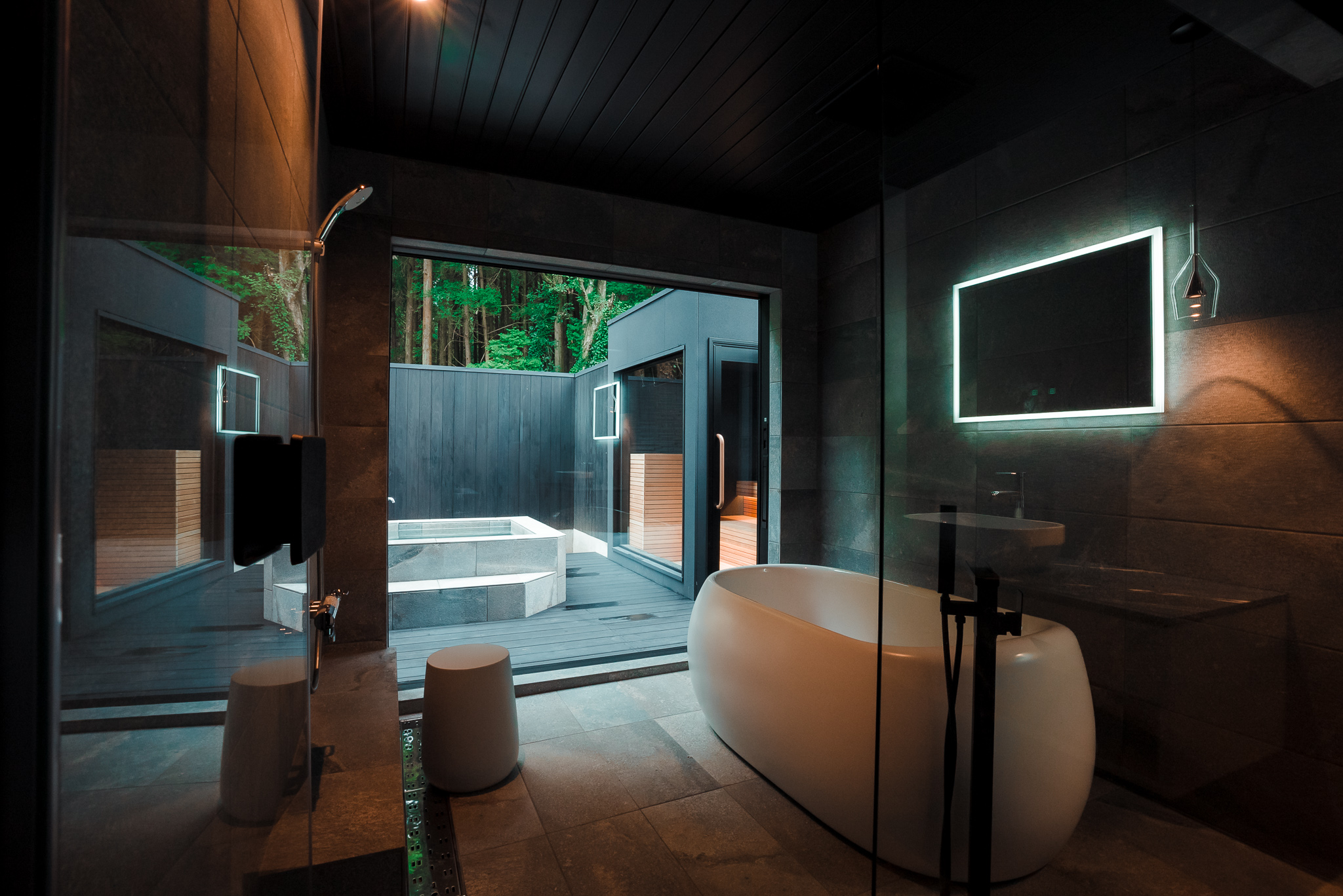 Mt.2は、Mt.1で培われた自然との調和や建築美、折紙の精神を受け継ぎつつ、より親しみやすく手が届きやすい滞在を提供する棟で、最大6名まで宿泊可能です。精緻なデザインや歴史・文化の層を感じられる空間はそのままに、若い方や初めて訪れる方でも気軽に楽しめる設計になっています。大きな窓から自然を借景として取り込み、静かな時間を過ごす体験はMt.1と共通しながらも、よりフレンドリーで開かれた印象を与えます。