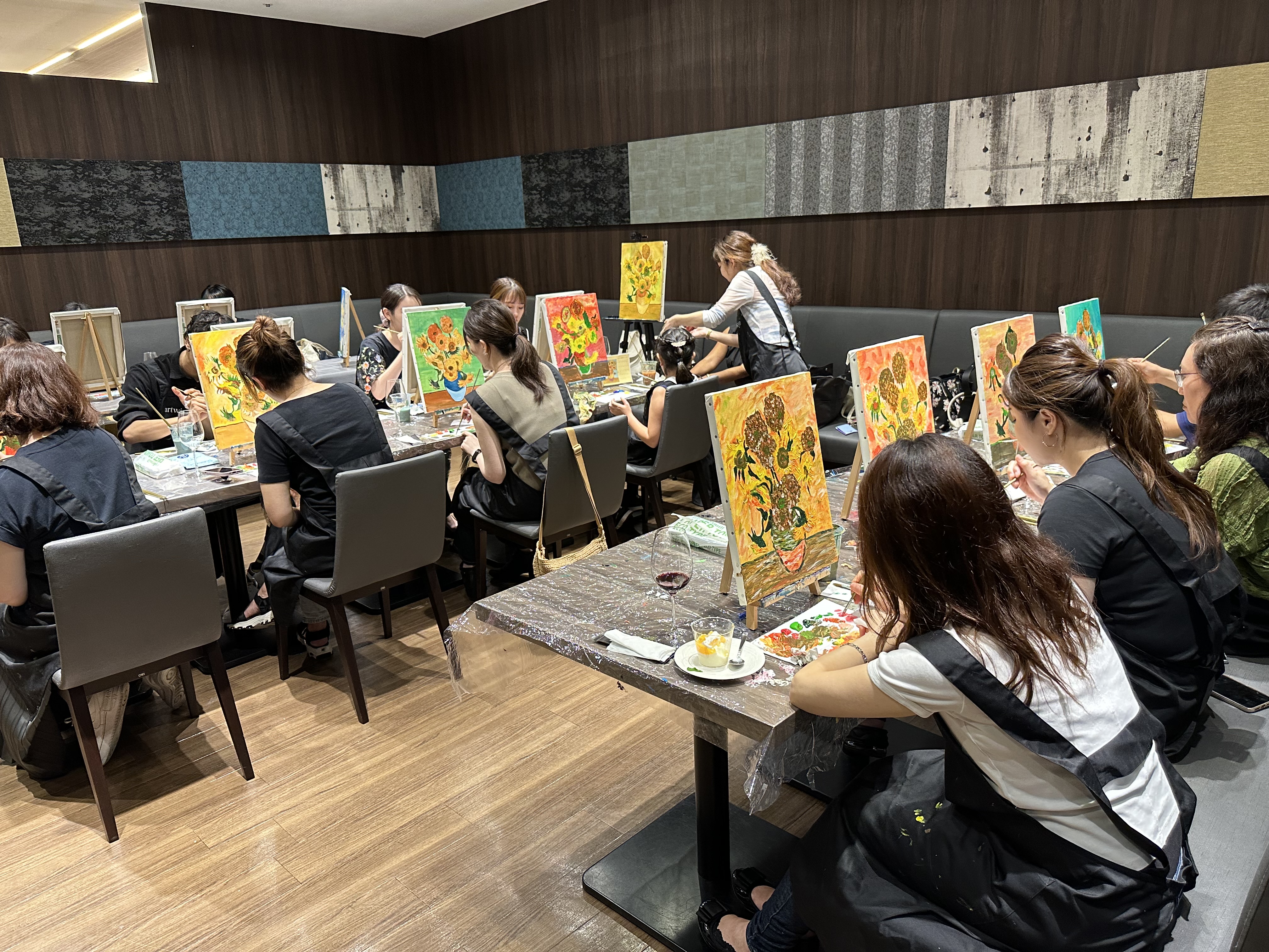 東京藝術大学をはじめとする美大出身の講師陣のガイドのもと、画家の軌跡や絵画のテーマとペアリングしたワインを嗜みながら120分で絵を完成させることができるアートワークショップです。