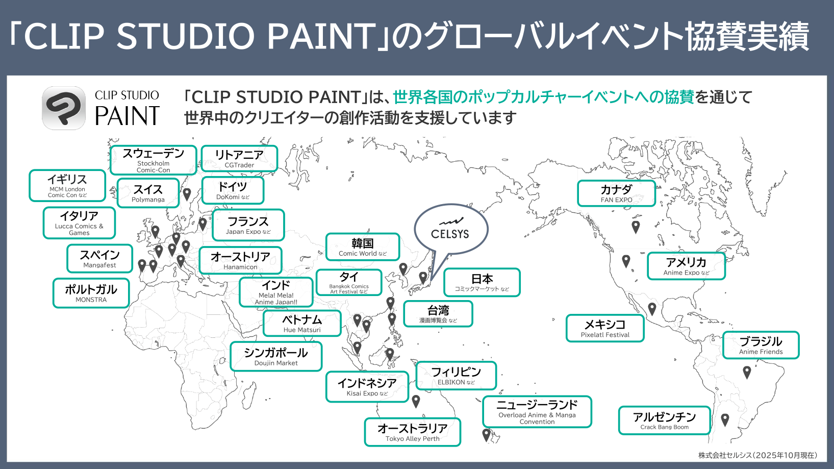 セルシスは、世界中の主要なポップカルチャーイベントにも積極的に協賛し、クリエイターとの接点を強化しています。また、現地の文化やニーズに寄り添ったマーケティング施策を実施し、日本のマンガ・アニメーション文化に興味関心の高いグローバルなクリエイター層における、「CLIP STUDIO PAINT」の認知度向上を目指しています。