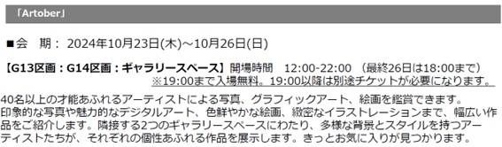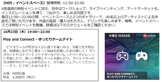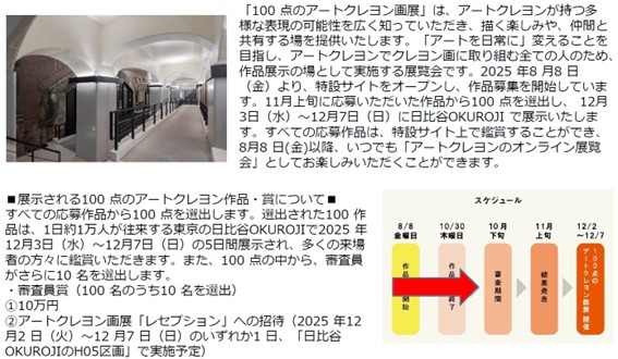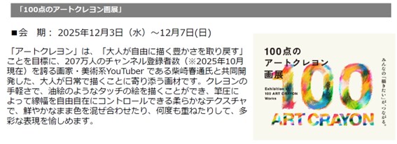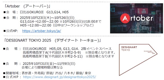 ホームイベント日比谷OKUROJIで五感を味わうアート! イベント 日比谷OKUROJIで五感を味わうアート! By 芸術生活 編集部 2025年10月21日 0 5 シェア FacebookTwitterPinterestWhatsApp ◆10月23日㈭~26日㈰「Artober」◆10月31日㈮~11月9日㈰「DESIGNART TOKYO 2025」◆12月2日㈫ 〜 12月7日㈰ 「100点のアートクレヨン画展」 日比谷OKUROJIで忘れられないアート体験を。 10月~12月にArtoberとDESIGNART TOKYO 2025、100 点のアートクレヨン画展が、来場者をアートの世界へ誘います。歴史ある煉瓦アーチの下で、五感を刺激するアート体験をぜひご堪能ください。 Tagsアートアートクレヨン画展アートーバーゲームデザイナート トーキョー新橋日比谷OKUROJI有楽町柴崎春通株式会社ジェイアール東日本都市開発高架下 シェア FacebookTwitterPinterestWhatsApp 前の記事現代美術家 松山智一、NY州ハウストン・バワリー・ウォールにて、《Color Of The City》の継続展示が決定次の記事「藤城清治101歳展 生きている喜びをともに」コラボカプチーノが登場! 芸術生活 編集部 RELATED ARTICLES イベント 内的世界の深層をたどりながら心の風景を繊細に描き出す作家・やましたあつこの個展「reflect」を、11月5日から12月3日までvoid+で開催します。 2025年10月21日 イベント 渋谷とホノルルを結ぶネイキッドのアート体験が代々木公園に登場 2025年10月21日 イベント セルシスの「CLIP STUDIO PAINT」がタイの大規模アートイベント「BKK Comics Art Festival #4」に協賛 2025年10月21日 返事を書く 返事をキャンセル コメント: あなたのコメントを入力してください。 名前: ここにあなたの名前を入力してください Eメール: 間違ったメールアドレスを入力しました。 ここにあなたのEメールアドレスを入力してください ウェブサイト: 次回の私のコメントのためにこのブラウザに私の名前、電子メール、そしてウェブサイトを保存してください。 Most Popular 内的世界の深層をたどりながら心の風景を繊細に描き出す作家・やましたあつこの個展「reflect」を、11月5日から12月3日までvoid+で開催します。 2025年10月21日 渋谷とホノルルを結ぶネイキッドのアート体験が代々木公園に登場 2025年10月21日 パークホテル東京、50室目のアーティストルーム「ユートピア イン ジャパン」が誕生 2025年10月21日 「藤城清治101歳展 生きている喜びをともに」コラボカプチーノが登場! 2025年10月21日 もっとロードする Recent Comments