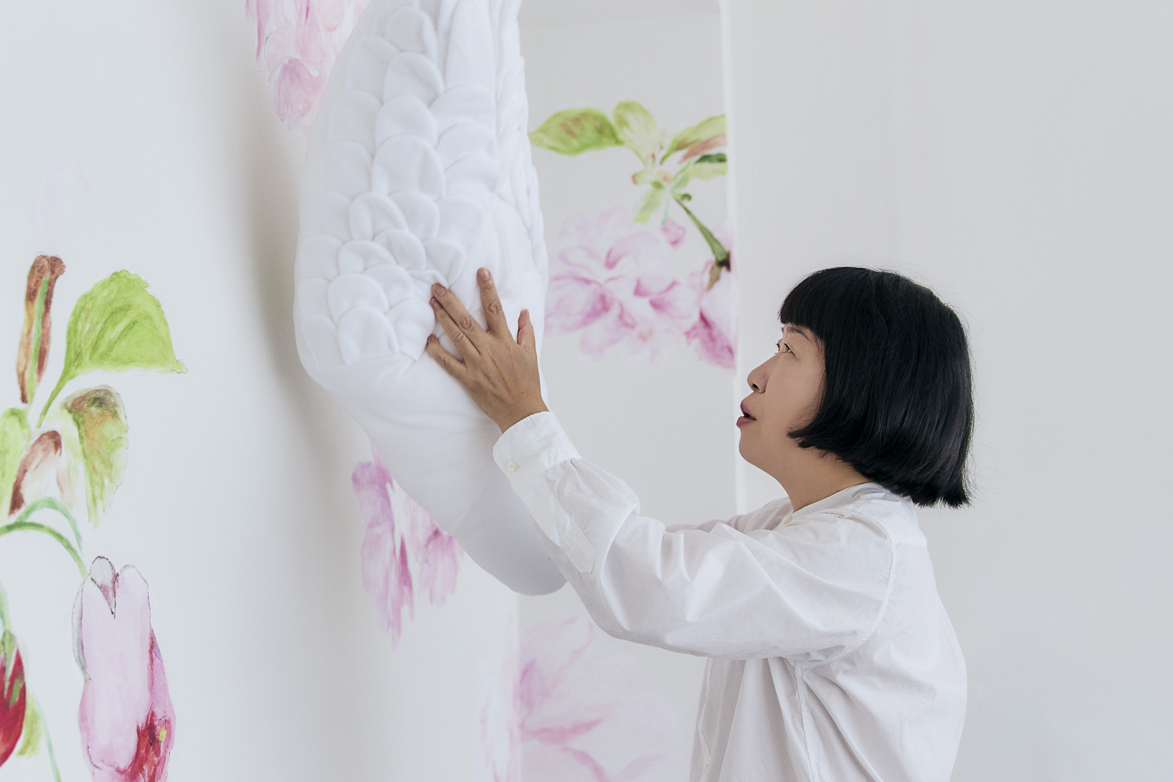 Completed the Post-Graduate Course (Fine Arts) of Musashino Art University, Junior College of Art and Design, Department of Fine Arts in 1992. She began presenting her own exhibitions in 1995. Since then, She has made a name for herself with numerous large-scale fabric installations, including human figures (“Hitogata”), life-sized dolls modeled after herself, and dandelion motifs. She works alone in her studio and continues to create prolifically every day. In recent years, her signature projects have featured immersive environments inhabited by flocks of life-sized budgerigars (parakeets). Selected for the 2nd Taro Okamoto Award for Contemporary Art. Recent major exhibitions include the solo exhibition “Pico and Peeta” (2024 / @btf / Tokyo), “Semijikan – Parakeets’ Excursion” (2019 / Kakurin Temple / Hyogo), “Rokko Meets Art 2018” (Hyogo), “Art Line Kashiwa 2018 – Smiling” (Chiba), and the solo exhibition “Winter Festival” (2015 / Park Hotel Tokyo 25F / Tokyo).