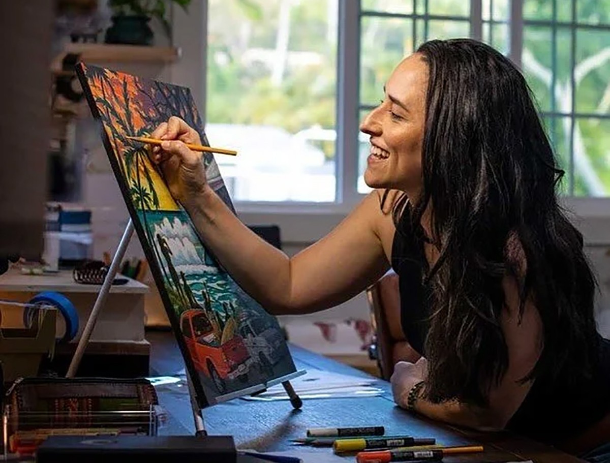 海、想像力、そしてローカルな島の暮らしにインスピレーションを受け、ユーモラスな魚のキャラクターからカラフルな壁画、ファインアート作品まで、あらゆる創作に遊び心あふれるスピリットを吹き込んでいます。