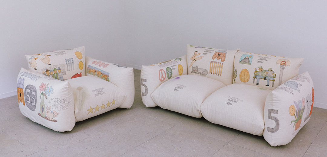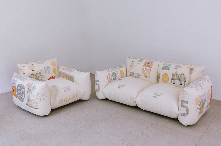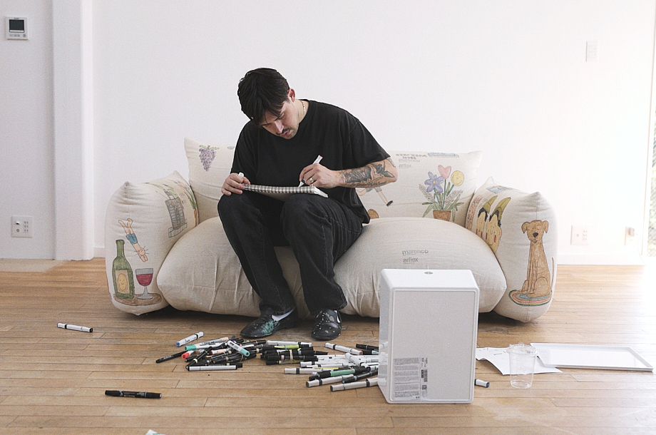 〈everyone loves MARENCO〉 で目指したのは、“暮らしの中で育てていくソファ”です。汚れがあっても気にならず、使うほどにその人らしくなる――気を遣わずに使えるって、すごくかっこいいと感じます。アートワークは友人でもあるアーティストj.30000氏に依頼し、彼のやさしい筆致が理想のイメージを見事に表現してくれました。