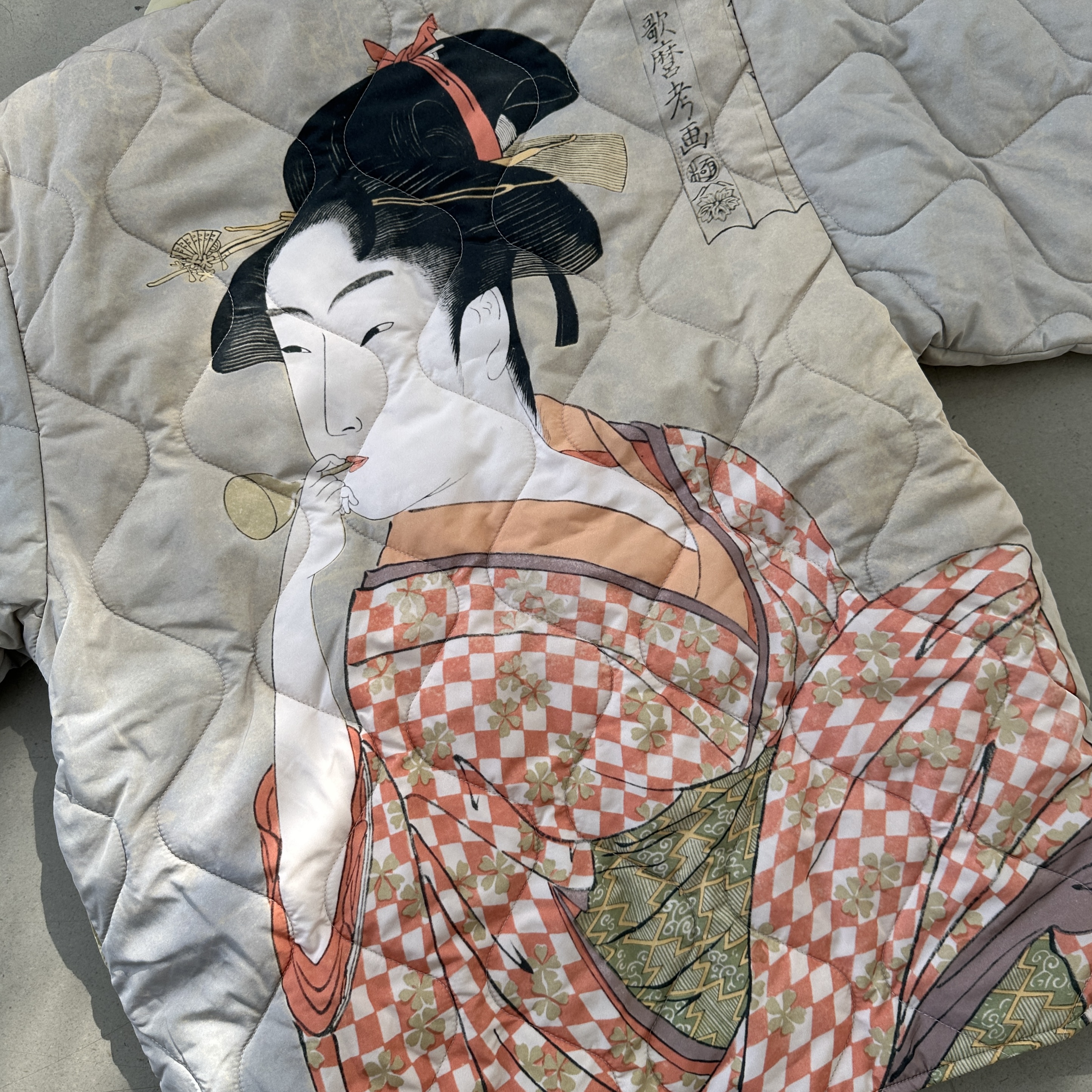 元になったアートの細部まで表現した美しいプリントで、前合わせ、袖、背面まで柄が入ります。