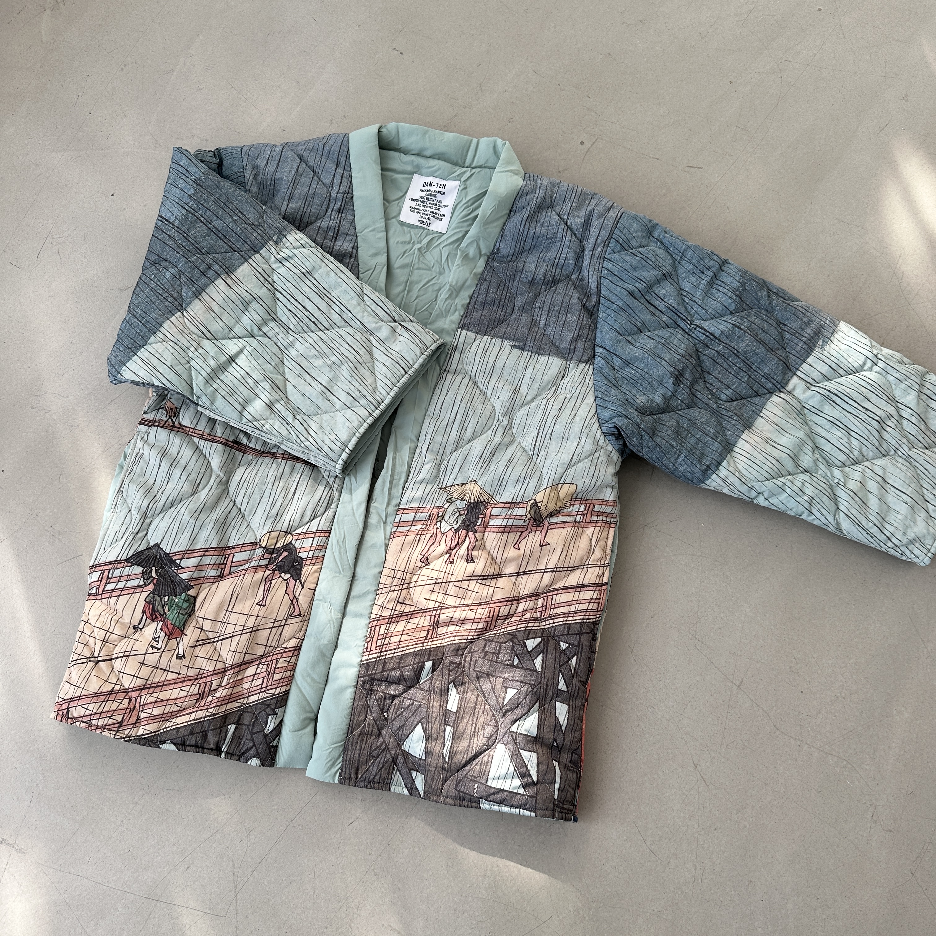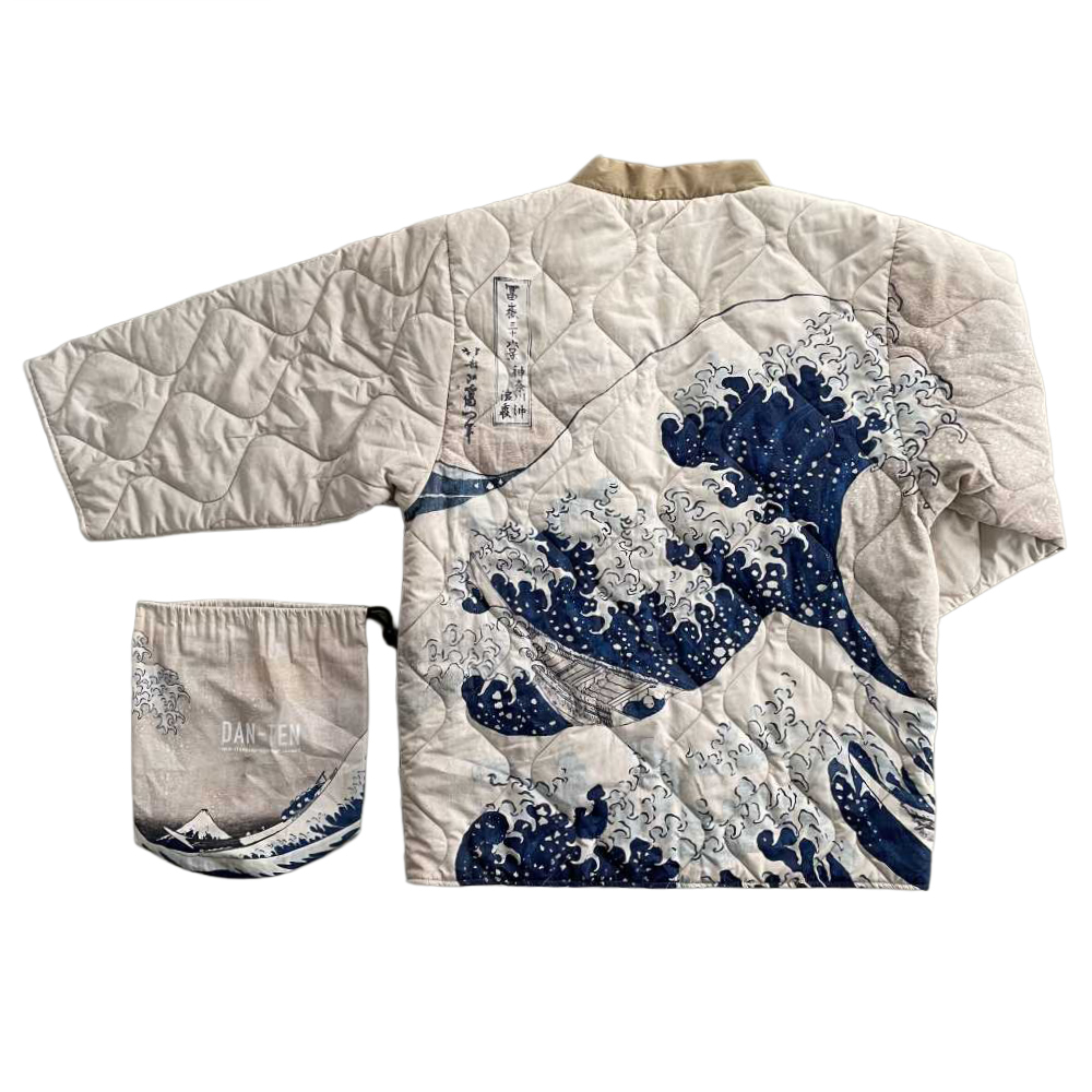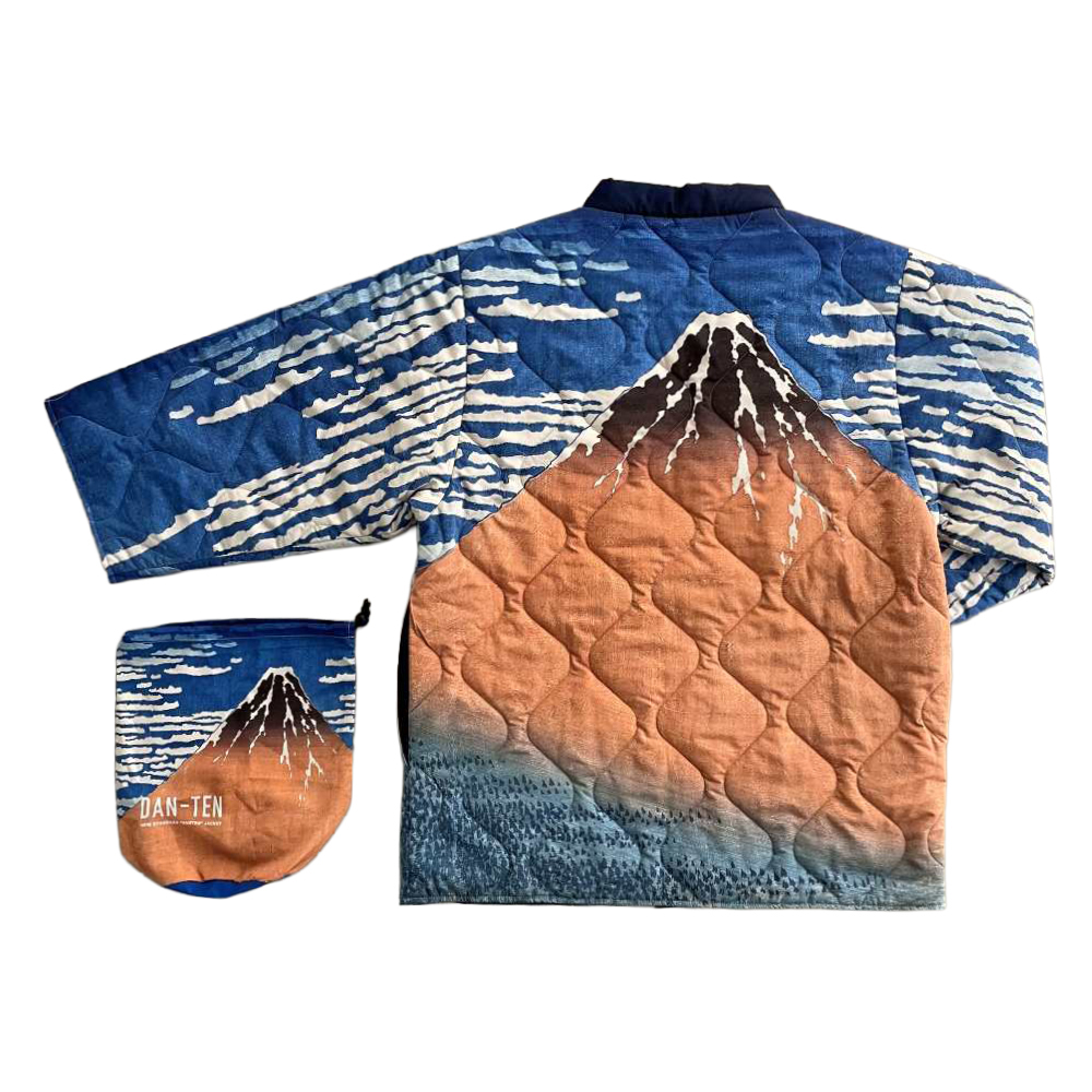 昔ながらのはんてんを軽量化し、より体に沿うようパターンをアレンジしたDAN-TENシリーズの定番型「DAN-TENコンフリーシリーズ」の表面に全8種類の名画をプリントした大胆なデザイン。