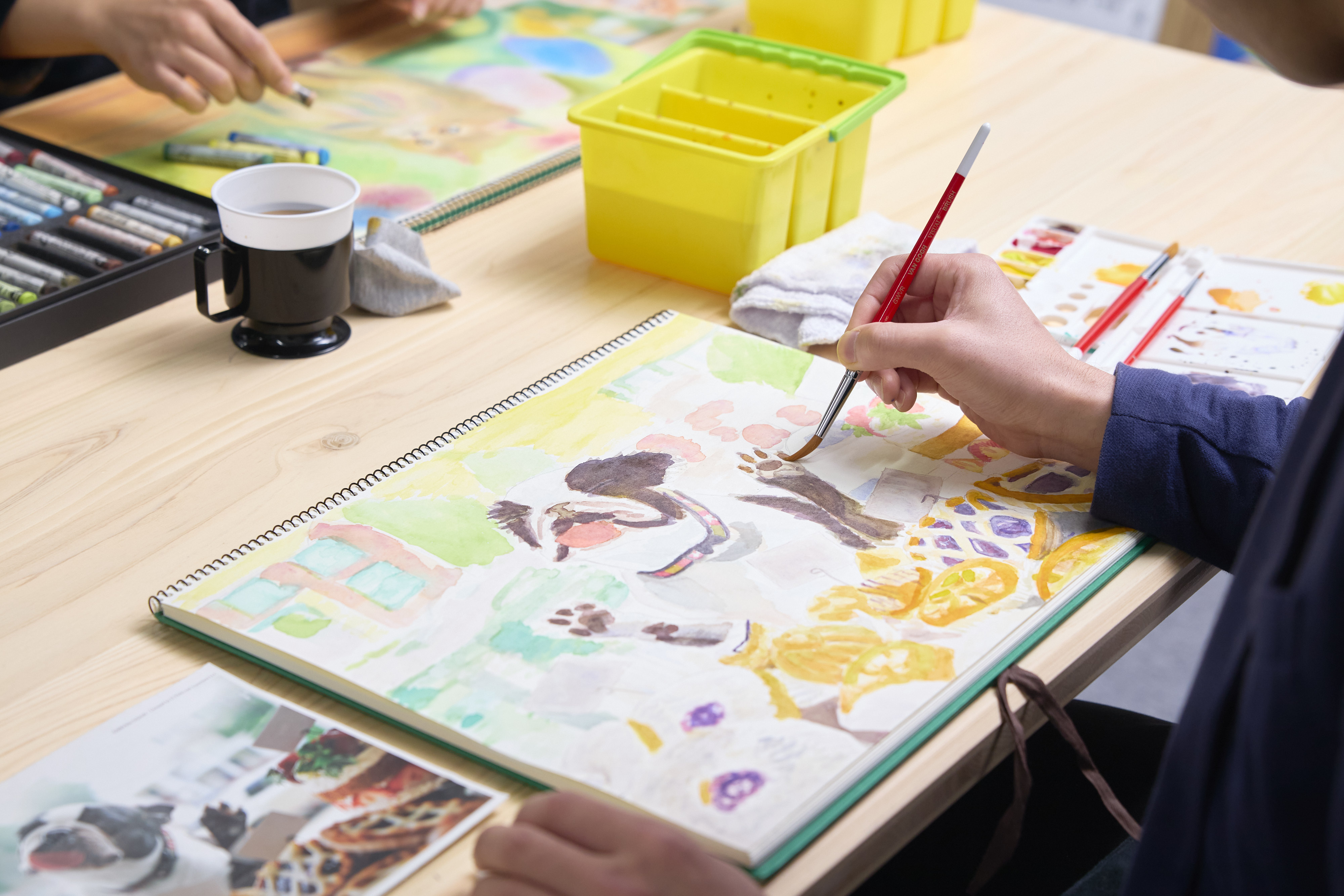 入退室自由、教室間でも振替参加可能といった特徴を備え、忙しい方でも気軽に通えて、しっかりと制作に打ち込める教室です。京都・祇園四条、大阪・梅田に続き、今年1月には山手線沿線に5教室を開校。そしてこのたび、初の商業施設内出店を果たしました。じわりじわりと日本全国に「絵を描く習慣」が浸透し始めています。