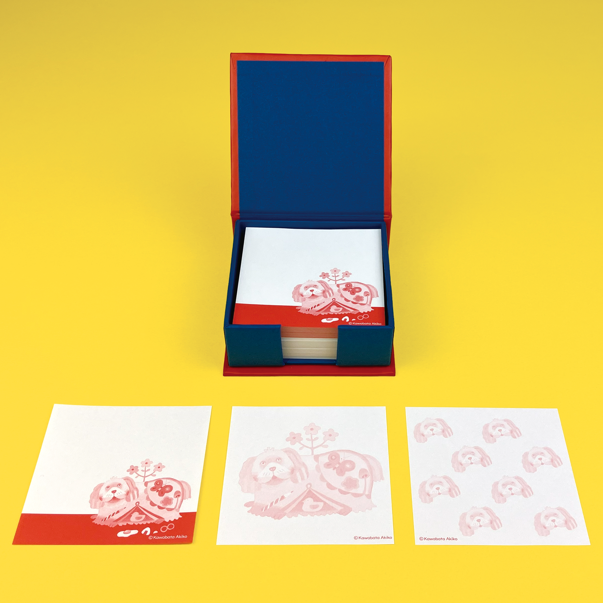 ボックスを彩る絵柄をアレンジした3柄のメモを、合計約250枚セットしました。メッセージカードや伝言、ギフトにも使える“小さなアート”です。