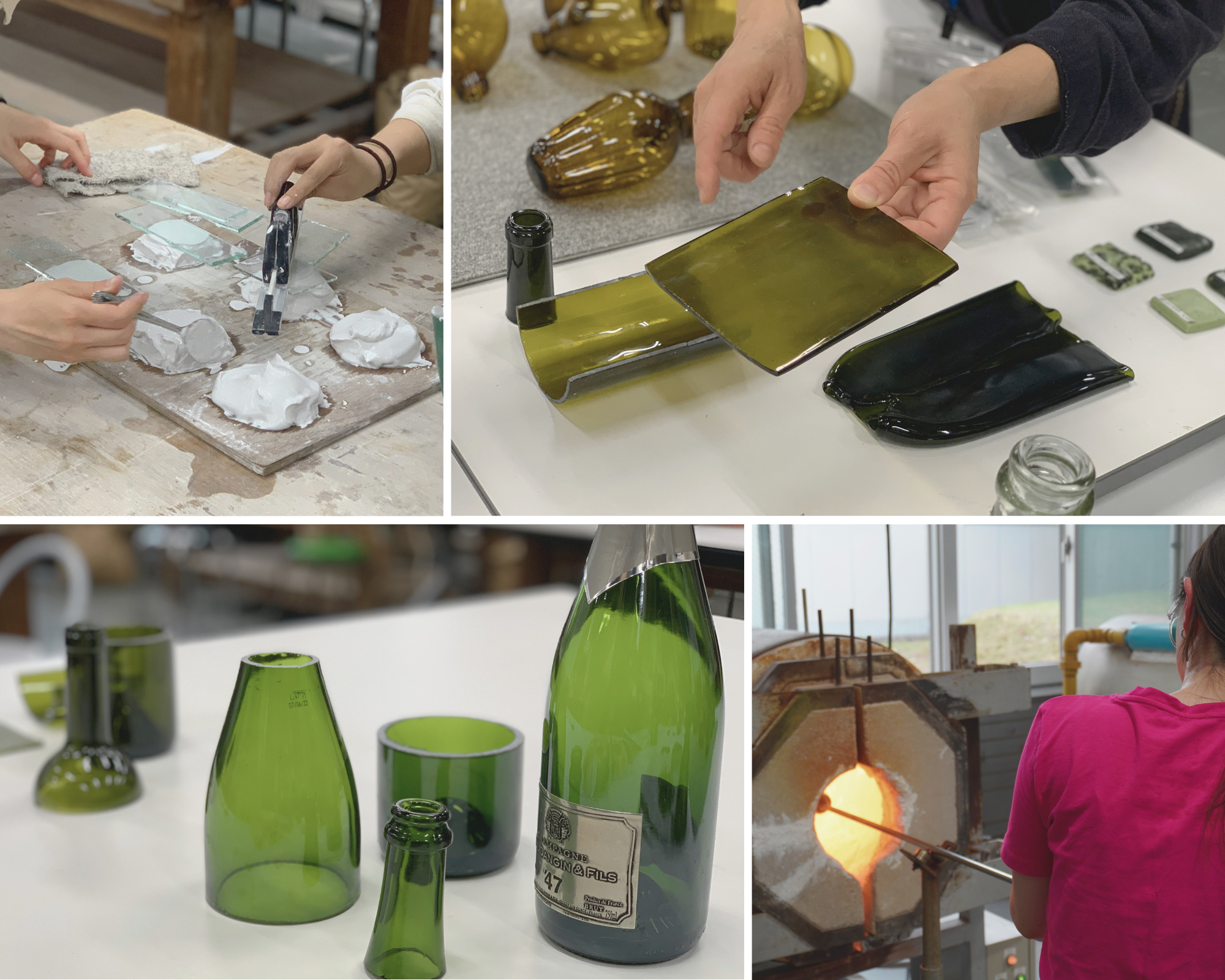 「ワインボトル アップサイクル プロジェクト」は、2023年に株式会社ソムリエと女子美術大学のコラボレーションから始まった、環境とアート、そして実社会をつなぐ取り組みです。