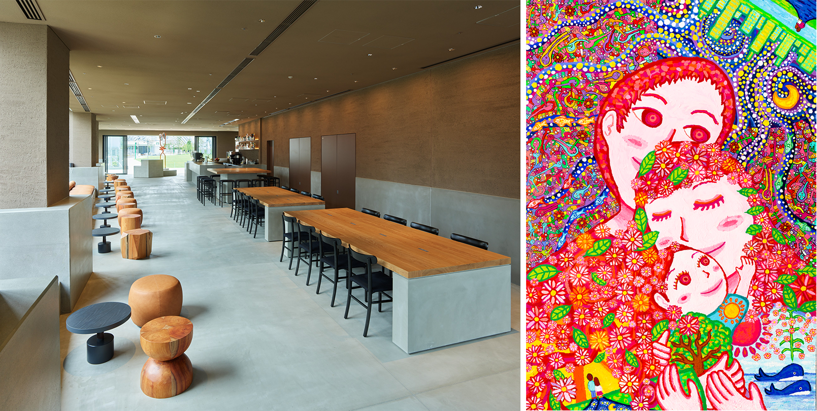 本展示は、sequenceブランドが掲げる理念“やさしいつながり”の実現を目指し、アートを通じてゲスト・スタッフ・地域をつなぐ新たなコミュニケーションの場を創出するものです。展示されるのは、「旅」や「つながり」をテーマに描かれた、障がいのあるアーティストたちの作品。ロビーを訪れたゲストが作品に目をとめ、ふと感じた温かさが、誰かへのやさしさに変わっていく。そんな“やさしい循環”を描き出す展示を目指しています。