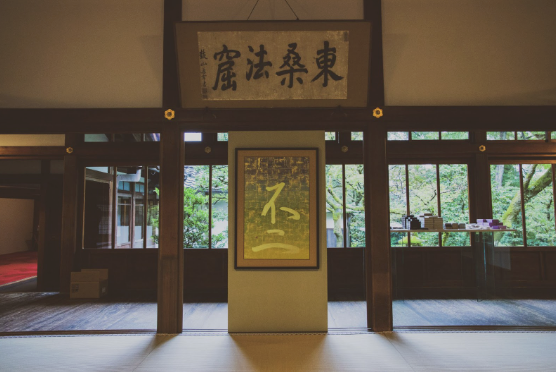 本展では、通常は非公開の「成就院」を特別に会場として使用しております。寺院内に所在する「月の庭」と呼ばれる庭園は、江戸時代初期に作庭された借景式・池泉鑑賞式 の庭園として知られており、国の名勝にも指定されています。古寺の建築美と名庭「月の庭」を眺めながら、秋の京都の風情をどうぞご堪能ください。