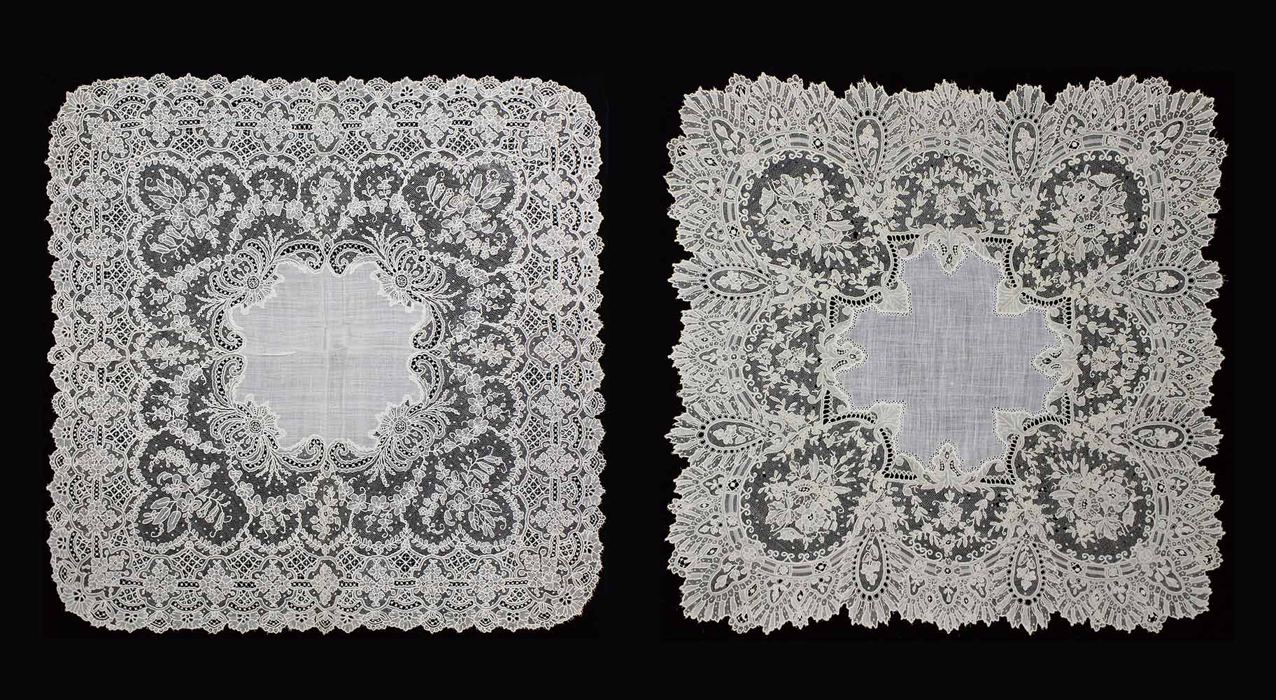 19世紀のベルギーで誕生した「ポワン・ド・ガーズ(Point de Gaze)」は、針(ニードル)と糸によって作られる「かがる」技法のレースで、透明感と立体感を併せ持つレースの最高峰です。豪華かつ精巧を極めたレースは当時の上流階級女性たちの憧れであり、ヨーロッパの宮廷文化の象徴でもありました。