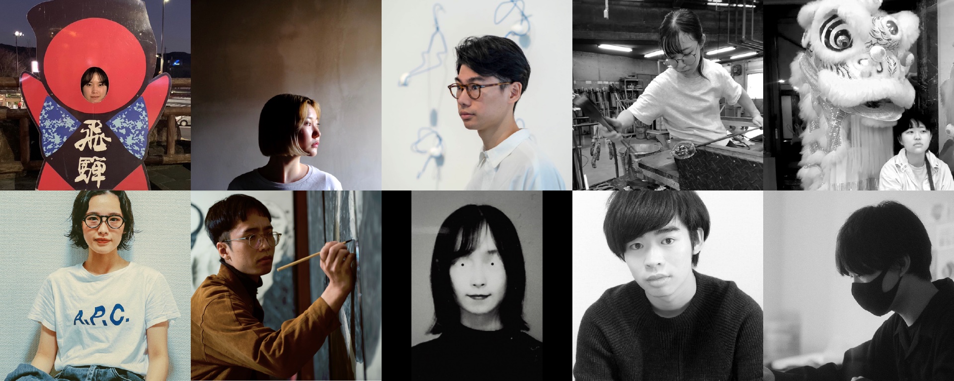 遠藤 茜(工芸)|斉藤 七海(彫刻 / 現代陶芸 )|サカイケイタ(メディアアート / 彫刻)|寺澤 季恵(彫刻 / インスタレーション )|中澤 ふくみ(絵画 / ドローイング / アニメーション)|成定 由香沙(建築)|丹羽 優太(絵画)|まちだリな(アニメーション)|村本 剛毅(メディアアート / 媒体芸術)|渡邉 泰成(彫刻/工芸 / 陶芸 )