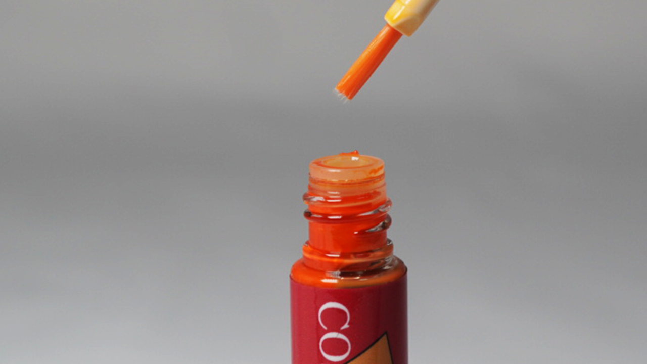 ②容器の縁で液量を調整し、薄く塗ります。※液量が多いと乾くまでに時間がかかります。