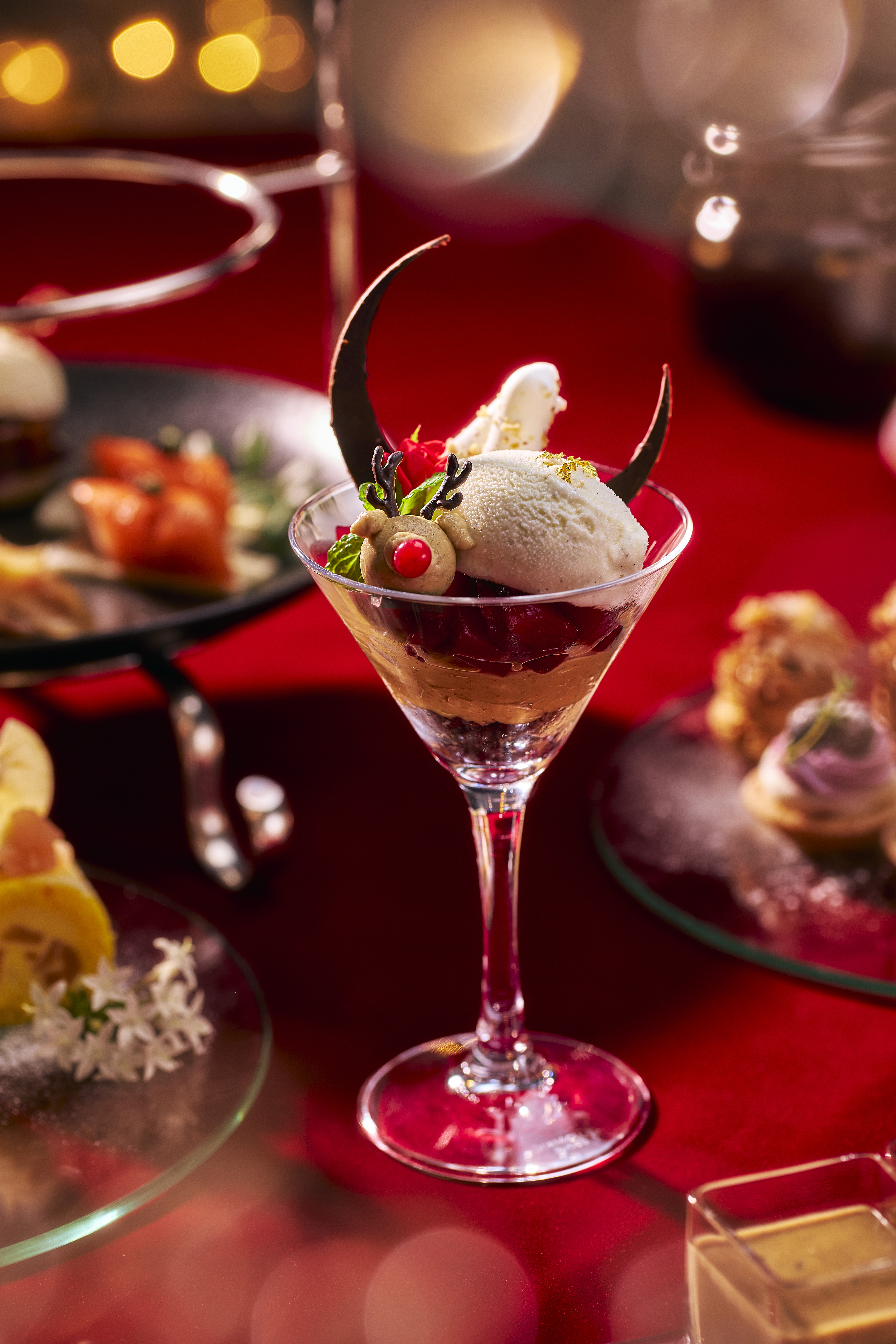 The Christmas special parfait made with pear compote in red wine will be served separately, alongside a three-tiered afternoon tea stand featuring sweets and savory items inspired by the Nordic winter.