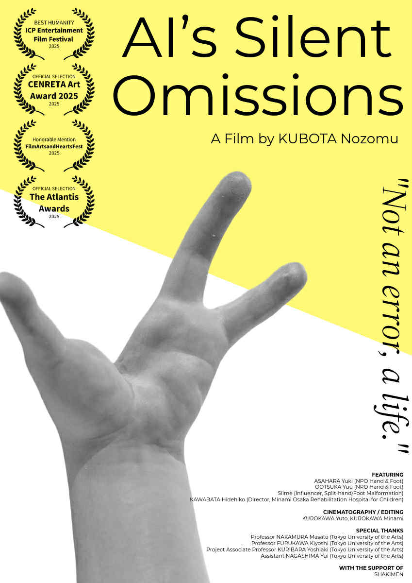 現代美術家 窪田望が監督したドキュメンタリー作品『AIが消し去る声』が第14回 Delhi Shorts International Film Festival(DSIFF)にて、BEST DOCUMENTARYを受賞しました。本作は、「AI社会の背後にある分類の暴力性」を、生まれつき5本指ではなく暮らす裂手症の当事者やご家族、医療従事者の方々への取材映像をもとに浮かび上がらせる作品です。本作品が評価されたことにより、この問いがより広範な国際的対話へと拡張していくことを期待しています。