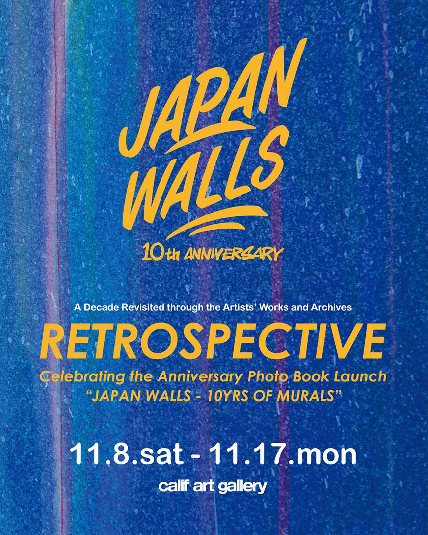 JAPAN WALLS創立10周年を記念し、10年の軌跡をまとめた写真集「JAPAN WALLS -10YRS OF MURALS-」を刊行。その発売を記念したグループ展「JAPAN WALLS 10TH ANNIVERSARY “RETROSPECTIVE”」を、中目黒のギャラリースペース「calif art gallery」にて、11月8日(土)〜11月17日(月)の期間開催いたします。