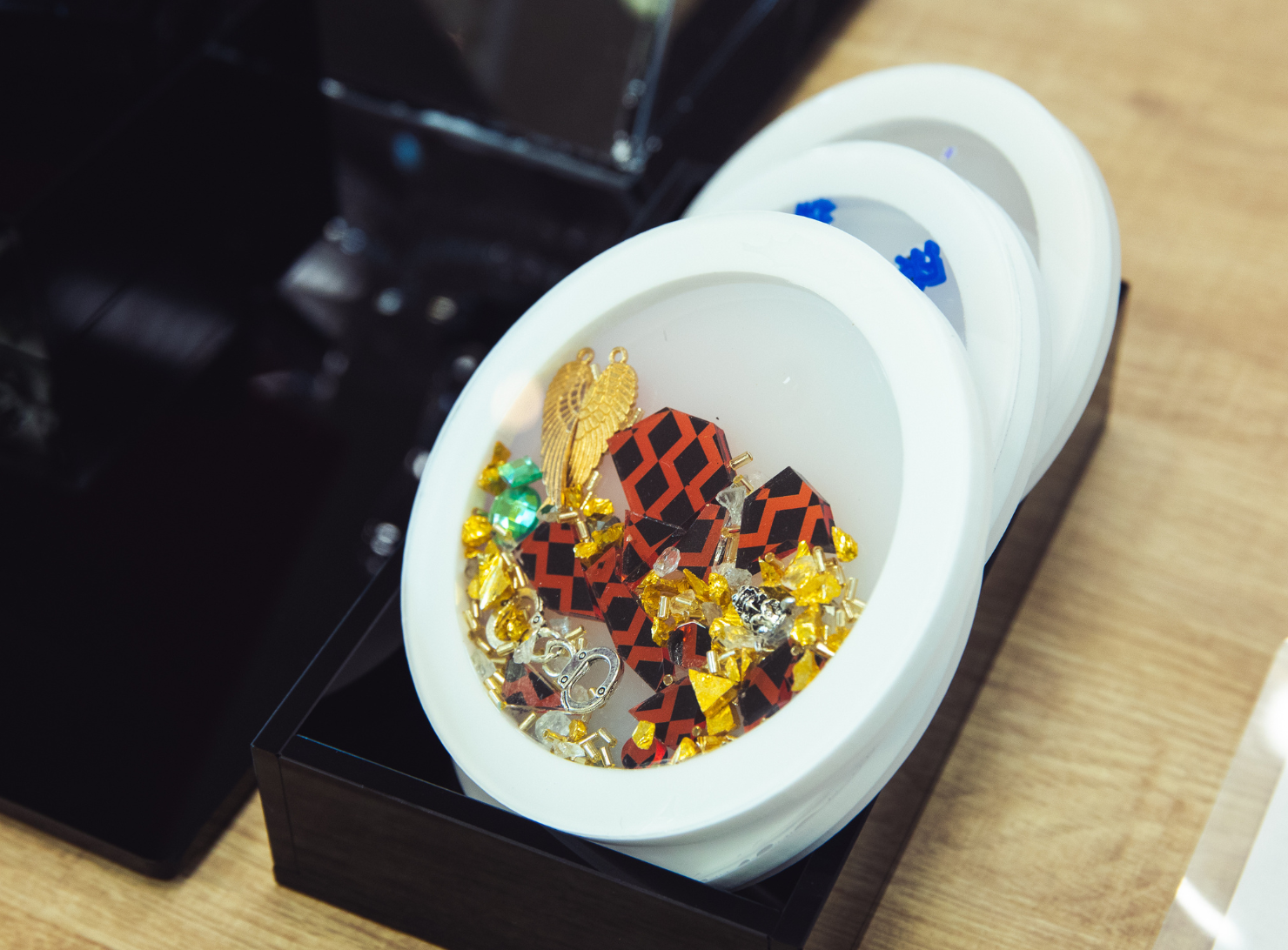 さまざまなタイプのカセットを差し込むことで、アクリライト™の豊富なカラーバリエーションやカッティングなどの表現の自由度と技術に触れられる。