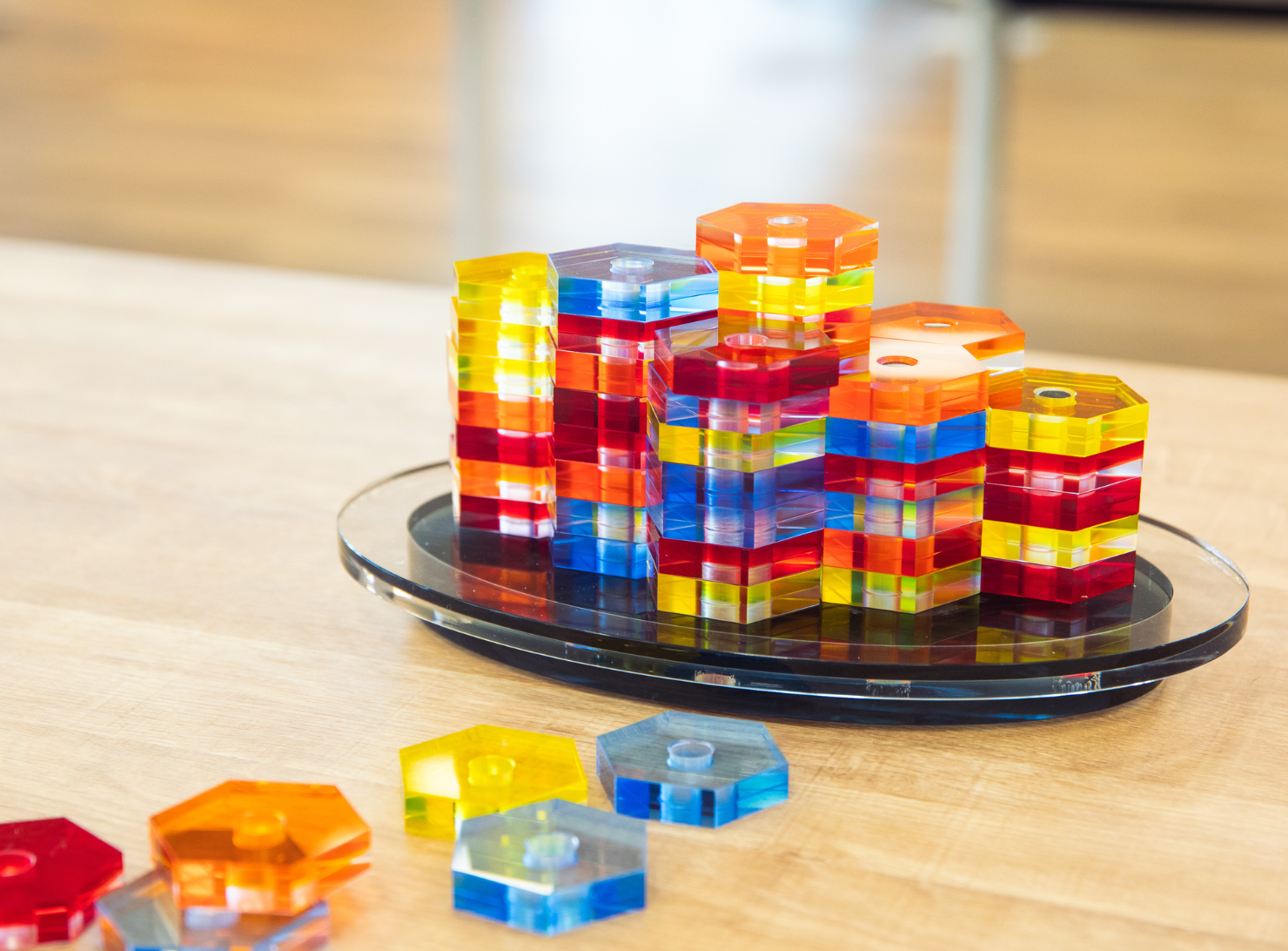角を丁寧に削ぎ落とした研磨加工により、アクリライト™の高い加工性と素材の魅力を引き立てた。