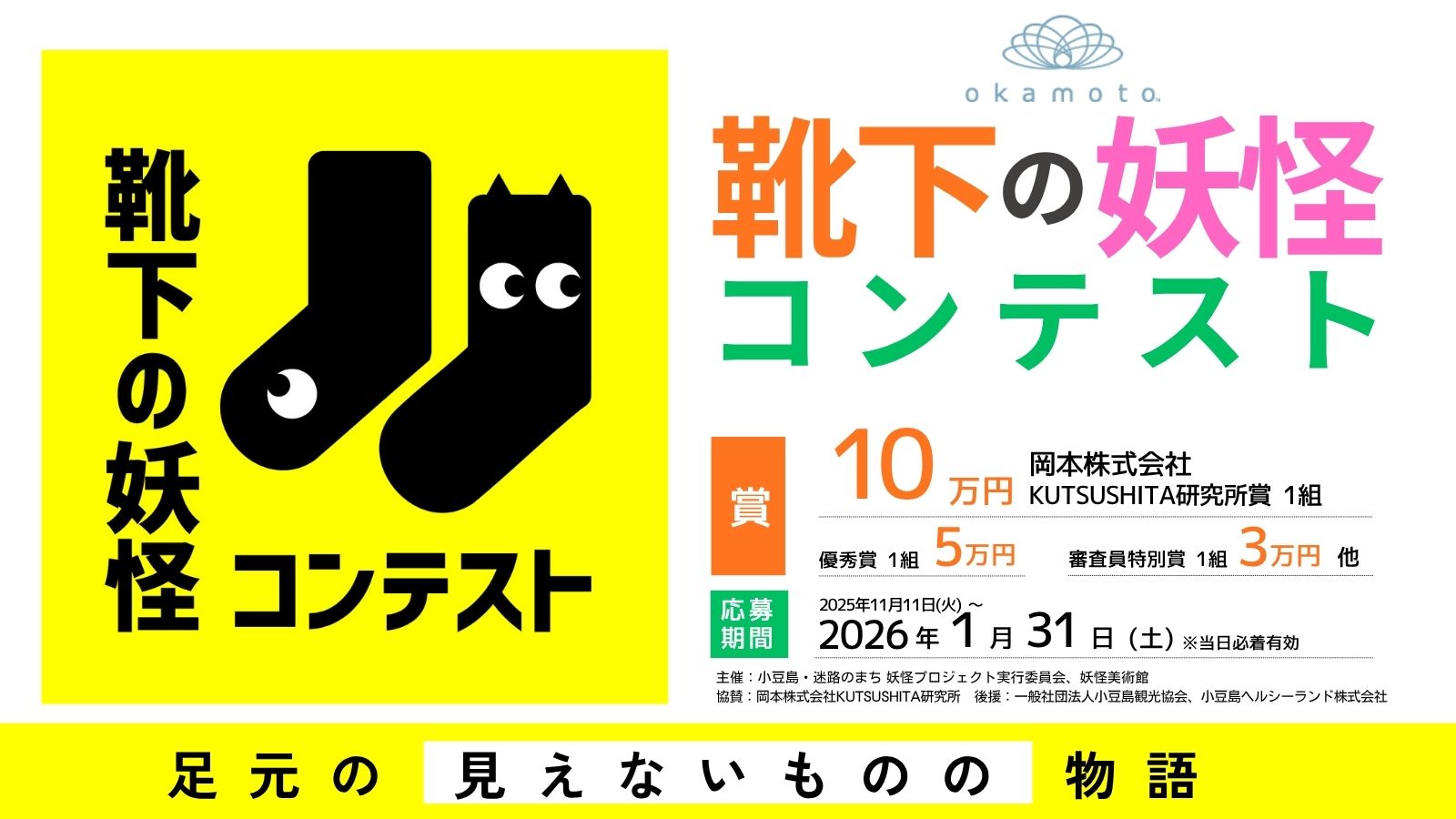 香川県・小豆島の「迷路のまち」(土庄本町)にある妖怪美術館(小豆島ヘルシーランド株式会社)は、国内靴下売上高No.1(※1)レッグウェアの製造卸販売で業界を牽引する岡本株式会社KUTSUSHITA研究所(本社:大阪市西区・本店:奈良県広陵町、代表取締役社長:岡本隆太郎)とコラボレーションし、「靴下×妖怪」をテーマに自由な発想で創造したアート作品を広く募集するコンテストを開催します。これは、2026年2月22日に小豆島で開催する妖怪の祭典「YOKAI EXPO 2026」のコンテンツのひとつとして始動するコンテストで、最終審査会は「YOKAI EXPO 2026」イベント内で実施し入賞者を決定します。